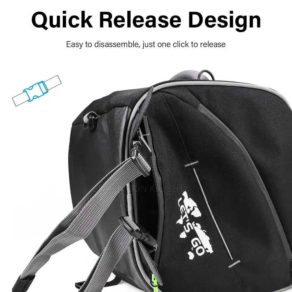 - Προσαρτήστε με ασφάλεια στο σκούτερ σας με δύο ιμάντες για στενή εφαρμογή· όταν δεν είστε πάνω στο ποδήλατο, χρησιμοποιήστε τον επενδεδυμένο ιμάντα ώμου για άνετη μεταφορά.
