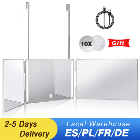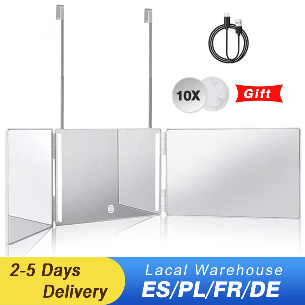 Καθρέφτης 360 Μοιρών Τριών Πλευρών με Φώτα LED, Αναδιπλούμενος Κουρέματος