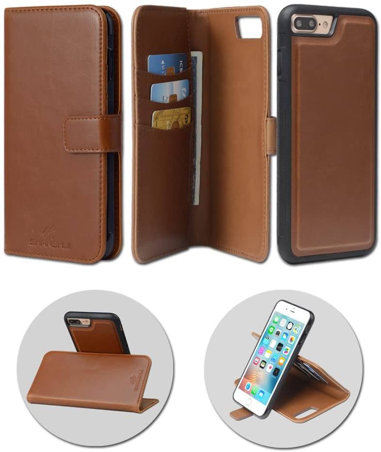 🟢 SHANSHUI PU Δερμάτινη Θήκη Συμβατή με iPhone 8 Plus/7 Plus Αποσπώμενη Θήκη Πορτοφολιού Με Θέσεις Καρτών στο Κάλυμμα Flip Book με Προστασία RFID και Λειτουργία Βάσης με Μαγνήτη Tan/Brown