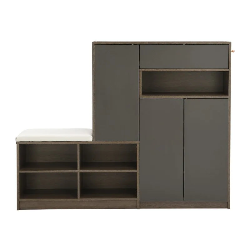 Γνωρίστε το Γκρι Ντουλάπι Παπουτσιών με Επενδεδυμένο Πάγκο και Ράφια — μια κομψή, εξοικονομητική χώρο λύση αποθήκευσης σχεδιασμένη για πολυσύχναστες εισόδους, ντουλάπες και υπνοδωμάτια. Η πόρτα με επαναφορά ανοίγει ομαλά χωρίς λαβές, προσφέροντας μια καθαρή, μοντέρνα εμφάνιση ενώ κρατά τα παπούτσια τακτοποιημένα και κρυμμένα από την όραση.