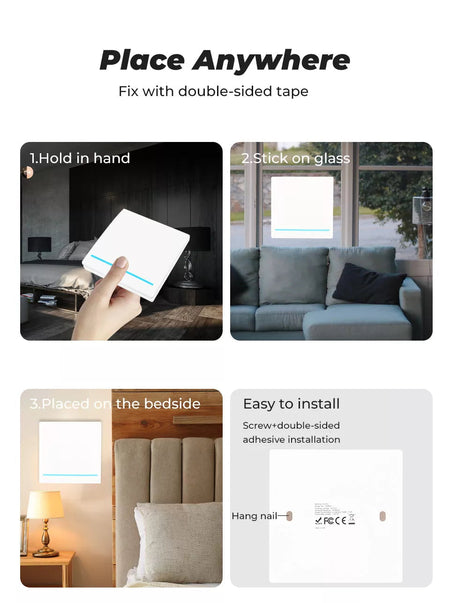Βεβαιωθείτε ότι έχετε μια μπαταρία αλκαλικής CR2032 διαθέσιμη για άμεση χρήση. Απολαύστε την ευκολία του φωτισμού με τηλεχειριστήριο με αυτόν τον κομψό και αποδοτικό έξυπνο διακόπτη. Ιδανικό για σπίτια, γραφεία ή οποιονδήποτε χώρο όπου η ευκολία χρήσης και ο σύγχρονος σχεδιασμός είναι απαραίτητοι. Αναβαθμίστε τον έλεγχο φωτισμού σας με τον SMATRUL 3 Gang RF 433Mhz Έξυπνο Διακόπτη Ασύρματης Σύνδεσης σήμερα!