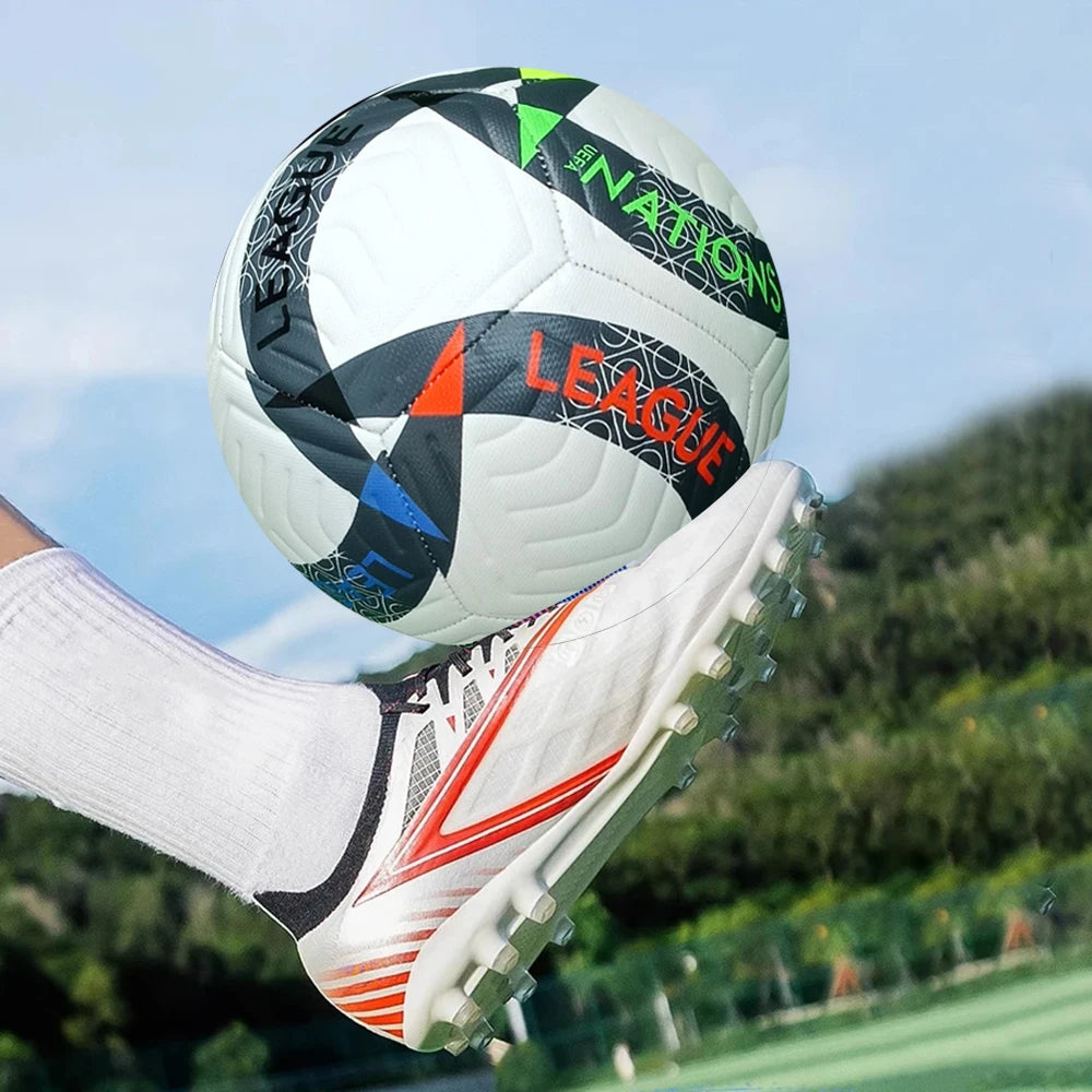 Ζήστε τη συγκίνηση του παιχνιδιού με αυτήν την υψηλής ποιότητας επίσημη μπάλα ποδοσφαίρου Μέγεθος 5, σχεδιασμένη τόσο για προπόνηση όσο και για αγώνες. Κατασκευασμένη από ανθεκτικό υλικό PU, αυτή η μπάλα είναι ανθεκτική στη φθορά, εξασφαλίζοντας ότι αντέχει στις δυσκολίες των υπαίθριων αθλημάτων πρωταθλήματος. Η επιφάνειά της, ραμμένη με μηχανή, παρέχει εξαιρετικό έλεγχο και απόδοση, καθιστώντας την αξιόπιστη επιλογή για παίκτες όλων των επιπέδων.