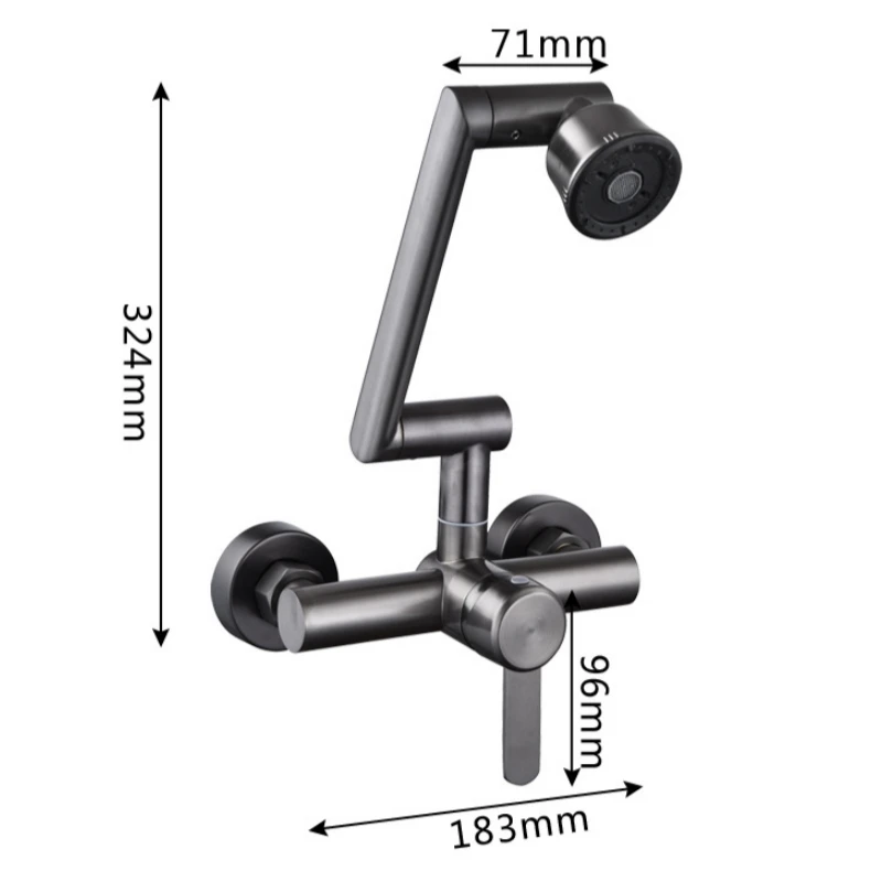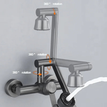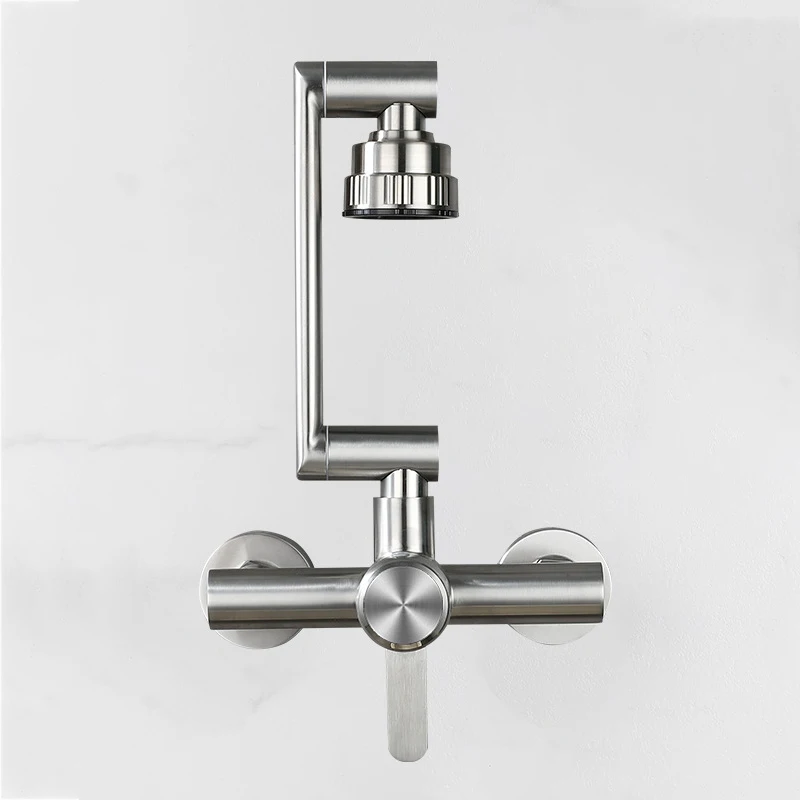 Ανοξείδωτος Χάλυβας 4 Λειτουργιών Κουζίνας Βρύση Τοίχου Μπάνιου Νιπτήρες Κουζίνας Μίξερ Νερού Κρύου Ζεστού 360 Μοίρες