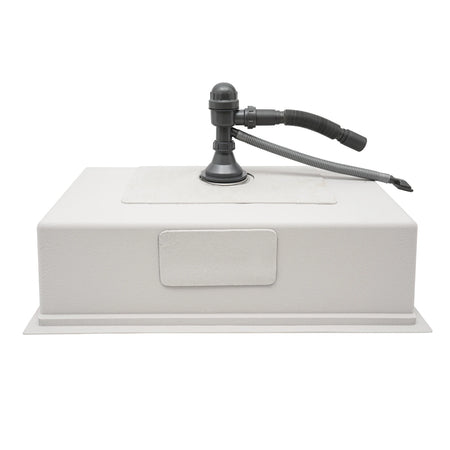 Σχεδιασμένο για ευελιξία, μπορεί να λειτουργήσει ως παραδοσιακός νεροχύτης ή ως συμπαγής σταθμός εργασίας. Ενσωματωμένα μπροστινά και πίσω σκαλοπάτια δημιουργούν μια βολική πλατφόρμα για να τοποθετήσετε μια σανίδα κοπής, έναν κύλινδρο ρολού και ένα σουρωτήρι, μετατρέποντας τον νεροχύτη σε έναν χώρο προετοιμασίας που εξοικονομεί χώρο. Ο σχεδιασμός με πίσω αποχέτευση βοηθά στη μεγιστοποίηση της αποθήκευσης στο ντουλάπι, και ένα επίστρωμα κατά της συμπύκνωσης κρατά την υγρασία μακριά από τα ντουλάπια σας. Μαλακά λαστιχένια ταπέτα γύρω και κάτω από τη λεκάνη μειώνουν τον θόρυβο κατά τη χρήση, και ο κεκλιμένος πάτος με έναν οδηγό νερού σε σχήμα Χ εξασφαλίζει γρήγορη αποστράγγιση μέσω μιας μεγάλης αποχέτευσης 4,33".