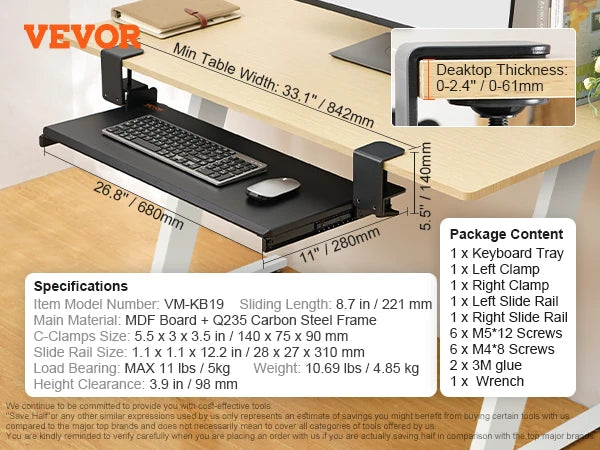 Μέγιστη αξιοποίηση του χώρου του γραφείου και αύξηση της άνεσής σας με τη Συσκευή Πληκτρολογίου Κάτω από το Γραφείο SucceBuy 26.8in Εργονομική Συρταρωτή. Με διαστάσεις 26.8 x 11 ίντσες, αυτή η ανθεκτική βάση πληκτρολογίου ταιριάζει κάτω από τα περισσότερα γραφεία και σύρεται ομαλά για εύκολη πληκτρολόγηση και γρήγορη αποθήκευση. Σχεδιασμένη για να κρατά πληκτρολόγια, ποντίκια και επιπλέον αντικείμενα, σας βοηθά να διατηρείτε έναν οργανωμένο χώρο εργασίας ενώ προάγει μια εργονομική θέση πληκτρολόγησης. Δημιουργημένη από τη SucceBuy, αυτή η βάση κάτω από το γραφείο προσφέρει καθαρές γραμμές και πρακτική λειτουργία στη ρύθμιση του σπιτιού ή του γραφείου σας.
