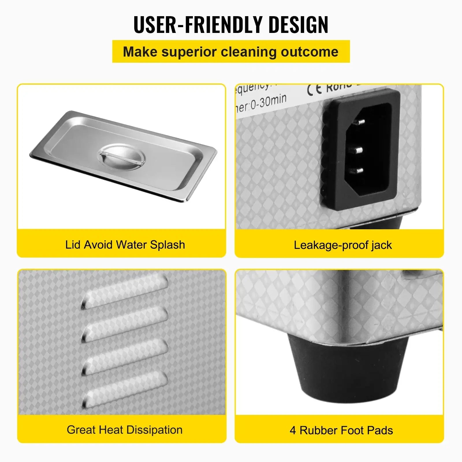 - Βαθύς και ήπιος καθαρισμός για μικρά αντικείμενα όπως σκουλαρίκια, κολιέ, γυαλιά ηλίου, οδοντοστοιχίες και εξοπλισμό τατουάζ χωρίς σκληρές τρίψιμο ή χημικά.