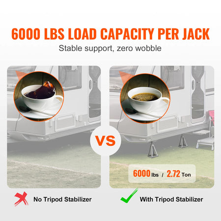 Κάθε γρύλος υποστηρίζει έως 6000 lbs (2.72 τόνοι) και διαθέτει έναν μαλακό ελαστικό δακτύλιο στην κορυφή για να προστατεύει το όχημά σας και να μειώνει την κίνηση. Η τριγωνική βάση προσφέρει σταθερότητα, ενώ ο σχεδιασμός με ρυθμιζόμενο ύψος σας επιτρέπει να προσαρμόσετε την υποστήριξη από 11" έως 17" (280–435 mm) για ανώμαλο έδαφος. Κατασκευασμένος από ανθεκτικό κράμα αλουμινίου ADC12 με βίδα γαλβανισμένου χάλυβα 20#, αυτοί οι γρύλοι αντέχουν στη διάβρωση και τη φθορά για μακροχρόνια χρήση. Με μόλις 1.65 lbs ανά γρύλο (0.75 kg) και διαστάσεις 6.3x6.3x11" (160x160x280 mm), αυτό το πακέτο 4 είναι αρκετά φορητό για να το αποθηκεύσετε σε μια τσάντα, ντουλάπα ή θήκη RV.