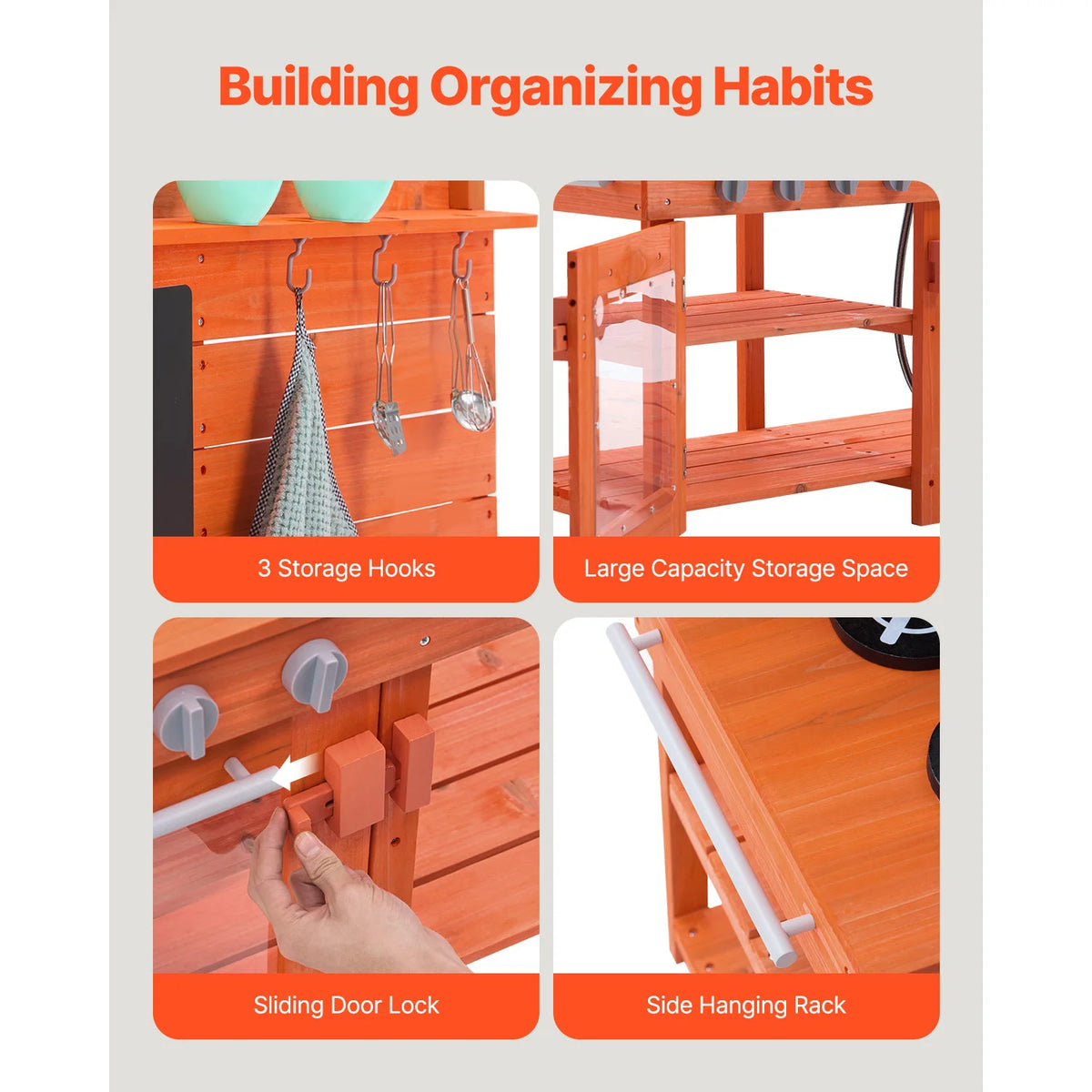 Οφέλη: Αυτή η κουζίνα μπλέντερ μετατρέπει τον χρόνο έξω σε πρακτική μάθηση—ενισχύοντας τη δημιουργικότητα, την ανάπτυξη των αισθήσεων και το συνεργατικό παιχνίδι. Η ανθεκτική ξυλεία της και η απλή συναρμολόγηση την καθιστούν μια επιλογή χαμηλής συντήρησης για τους γονείς και ένα μακροχρόνιο κέντρο παιχνιδιού για τα παιδιά.