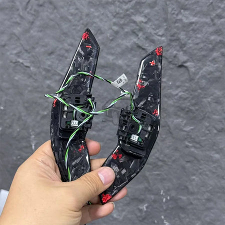 Αναβαθμίστε την καμπίνα του Volkswagen σας με αυτές τις πηδάλια αλλαγής ταχυτήτων από σφυρήλατο ανθρακονήμα για το Golf 6 GTI. Κατασκευασμένα από premium σφυρήλατο ανθρακονήμα, προσφέρουν μια εντυπωσιακή, υψηλής ποιότητας εμφάνιση ενώ ενισχύουν την αίσθηση κατά την αλλαγή ταχυτήτων. Σχεδιασμένα για το Golf 6 GTI, αυτά τα πηδάλια προσθέτουν μια πιο σπορ παρουσία στο τιμόνι σας και προσφέρουν μια εκλεπτυσμένη αίσθηση που οι λάτρεις των αυτοκινήτων θα παρατηρούν κάθε φορά που αλλάζετε ταχύτητες. Προερχόμενα από την Κίνα, και σας προσφέρονται από την High-concerned, συνδυάζουν στυλ με αντοχή για να αντέχουν στην καθημερινή οδήγηση.