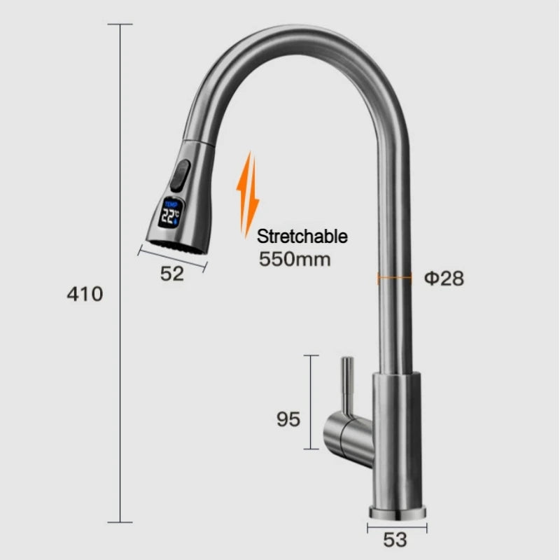 Βρύση Κουζίνας με Οθόνη Θερμοκρασίας – Αποσπώμενο Ψεκαστήρα