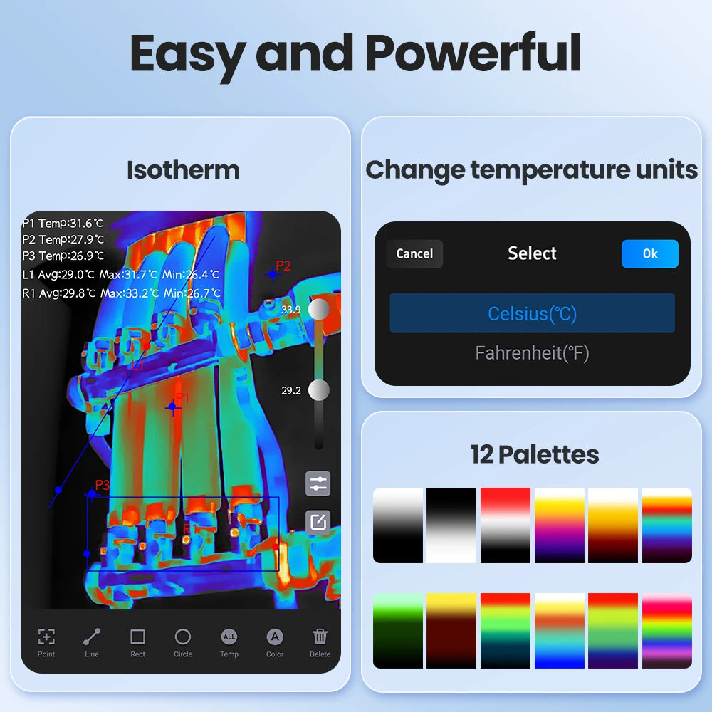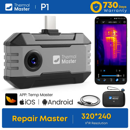 Ζήστε προηγμένη θερμική απεικόνιση στο smartphone σας με την θερμική κάμερα P1. Αυτή η συμπαγής φορητή υπέρυθρη κάμερα έχει σχεδιαστεί για τηλέφωνα USB-C, μετατρέποντας τις καθημερινές επιθεωρήσεις σε γρήγορες, ακριβείς πληροφορίες. Με αισθητήρα IR 320x240 και ρυθμό καρέ 25 Hz, αποκαλύπτει σημεία θερμότητας και ψυχρά σημεία αόρατα με γυμνό μάτι, βοηθώντας σας να εντοπίσετε ηλεκτρικά σημεία θερμότητας, κενά μόνωσης ή υπερθερμαινόμενα εξαρτήματα πριν προκαλέσουν προβλήματα. Ιδανικό για ενεργειακούς ελέγχους σπιτιών, συντήρηση εξοπλισμού και διαγνωστικά εν κινήσει, η P1 καθιστά τα θερμικά δεδομένα σαφή και εφαρμόσιμα.