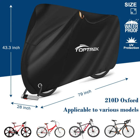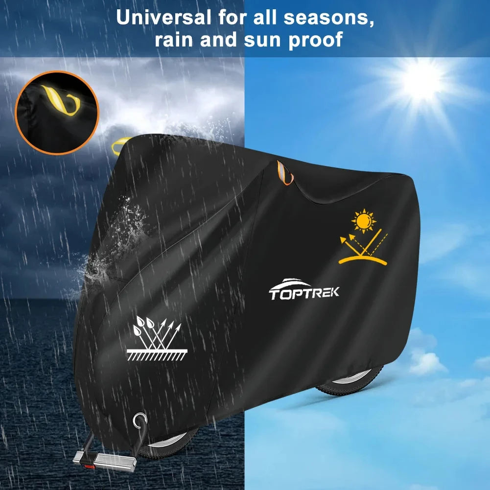 Για ενισχυμένη προστασία, η Toptrek προσφέρει επίσης την έκδοση 210T Oxford με ασημένια επίστρωση υψηλής πυκνότητας στην πίσω πλευρά για επιπλέον μόνωση UV και αδιαβροχοποίηση. Και οι δύο επιλογές διαθέτουν προσεγμένες λεπτομέρειες ασφαλείας: εμπρόσθια τρύπα κατά της κλοπής για καλώδιο ή κλείδωμα, ελαστικούς ιμάντες κάτω και αντιανεμικούς ιμάντες στο κάτω μέρος, καθώς και ανακλαστικό ιμάντα μπροστά για ορατότητα τη νύχτα. Το κάλυμμα έχει σχεδιαστεί να παραμένει στη θέση του σε ανέμους ενώ επιτρέπει εύκολη πρόσβαση όταν χρειάζεστε τη μοτοσυκλέτα σας.