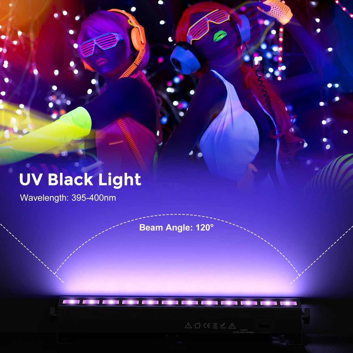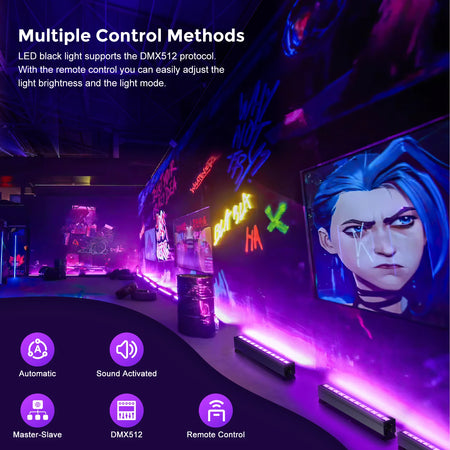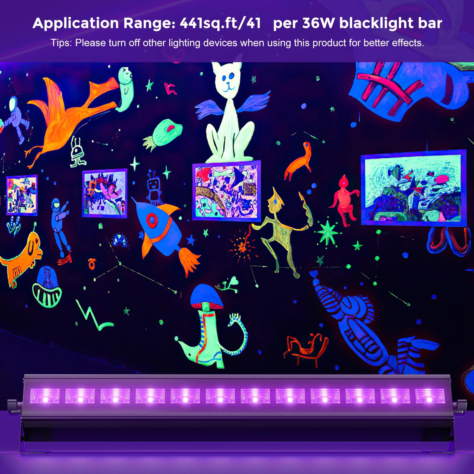 Είτε δημιουργείτε ατμόσφαιρα πάρτι που λάμπει στο σκοτάδι, είτε αναδεικνύετε διακοσμητικά που αντιδρούν στο UV, είτε υποστηρίζετε μια παραγωγή Halloween, Χριστουγέννων ή θεάτρου, αυτό το φως τοίχου UV προσφέρει σταθερό, εντυπωσιακό χρώμα με ελάχιστη προσπάθεια. Τα οικολογικά UV LED του παρέχουν μια μακράς διάρκειας, χαμηλής κατανάλωσης εναλλακτική λύση στους παραδοσιακούς φθορισμού σωλήνες, ενώ το περιλαμβανόμενο τηλεχειριστήριο και ο έλεγχος DMX σας βοηθούν να δημιουργήσετε δυναμικές σκηνές φωτισμού άμεσα.