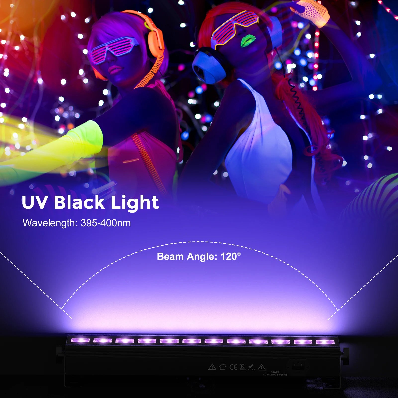 Φωτίστε τις εκδηλώσεις σας με το UV 12 LED Wall Wash Light από την U'King. Σχεδιασμένο για επαγγελματικές σκηνές, DJs, γάμους και πάρτι, αυτή η συμπαγής μαύρη συσκευή UV τοίχου προσφέρει μια ισχυρή, φθορίζουσα λάμψη που αναδεικνύει τα χρώματα σώματος, τα φθορίζοντα υφάσματα και τη διακόσμηση ειδικών εφέ υπό μαύρο φως. Με 12 αποδοτικά 3W UV LED και μήκος κύματος 395–400 nm, θα απολαύσετε ζωντανή, ομοιόμορφη κάλυψη σε τοίχους ή φόντα. Η στιβαρή θήκη από κράμα αλουμινίου κρατά τη μονάδα ελαφριά αλλά ανθεκτική, ενώ ένας ενσωματωμένος ανεμιστήρας ψύξης διατηρεί την ιδανική απόδοση κατά τη διάρκεια μακρών συνεδριών.