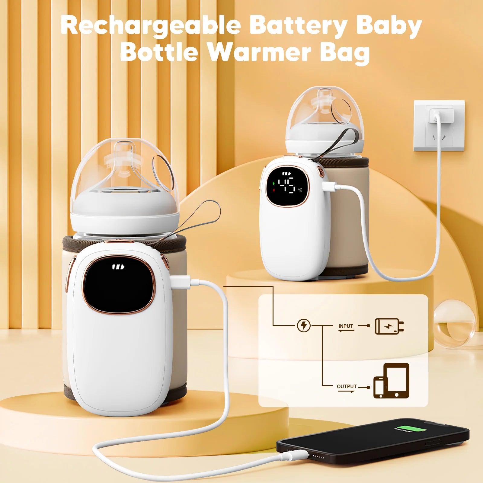 Ασύρματος Θερμαντήρας Μπιμπερό USB με Εμφάνιση Θερμοκρασίας διατηρεί το γάλα του μωρού στην τέλεια θερμοκρασία εν κινήσει με μια θήκη θέρμανσης που τροφοδοτείται από USB και μια καθαρή ένδειξη θερμοκρασίας.