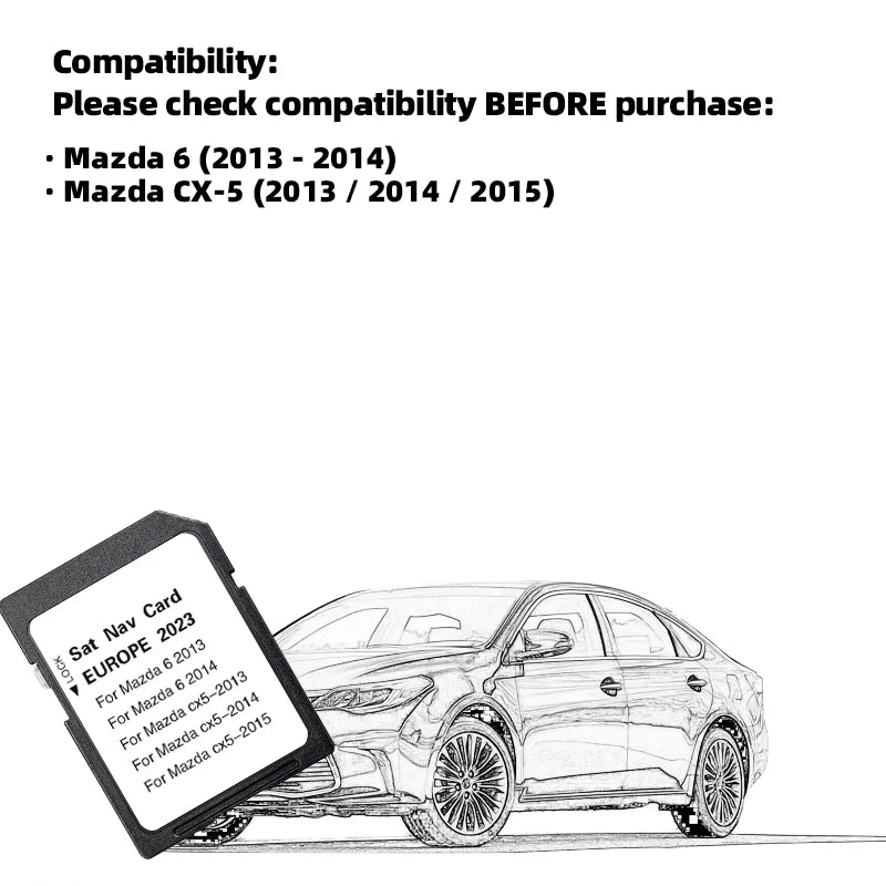 Τέλειο για τους ιδιοκτήτες Mazda 6 και CX‑5 που οδηγούν σε όλη την Ευρώπη ή ταξιδεύουν συχνά, υποστηριζόμενο από πιστοποίηση CE. Ενημερώστε την πλοήγηση του αυτοκινήτου σας τώρα για να απολαύσετε αξιόπιστη δρομολόγηση και ενισχυμένη αυτοπεποίθηση στην οδήγηση.