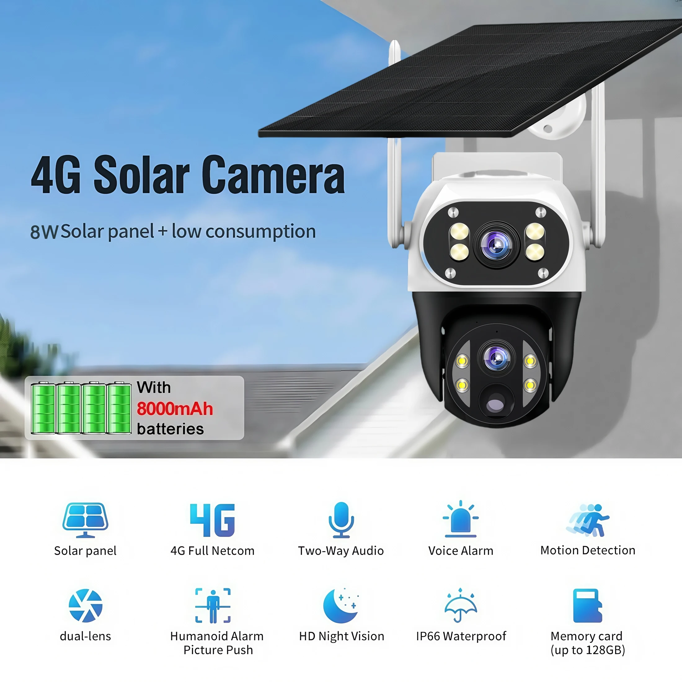 V380 8MP Διπλή Φακός 4G IP Κάμερα Ηλιακή PIR Ανίχνευση Ανθρώπων Νυχτερινή Όραση Αδιάβροχη Ασφαλείας Βίντεο Κάμερα 4K Μπαταρία CCTV Μόνιτορ