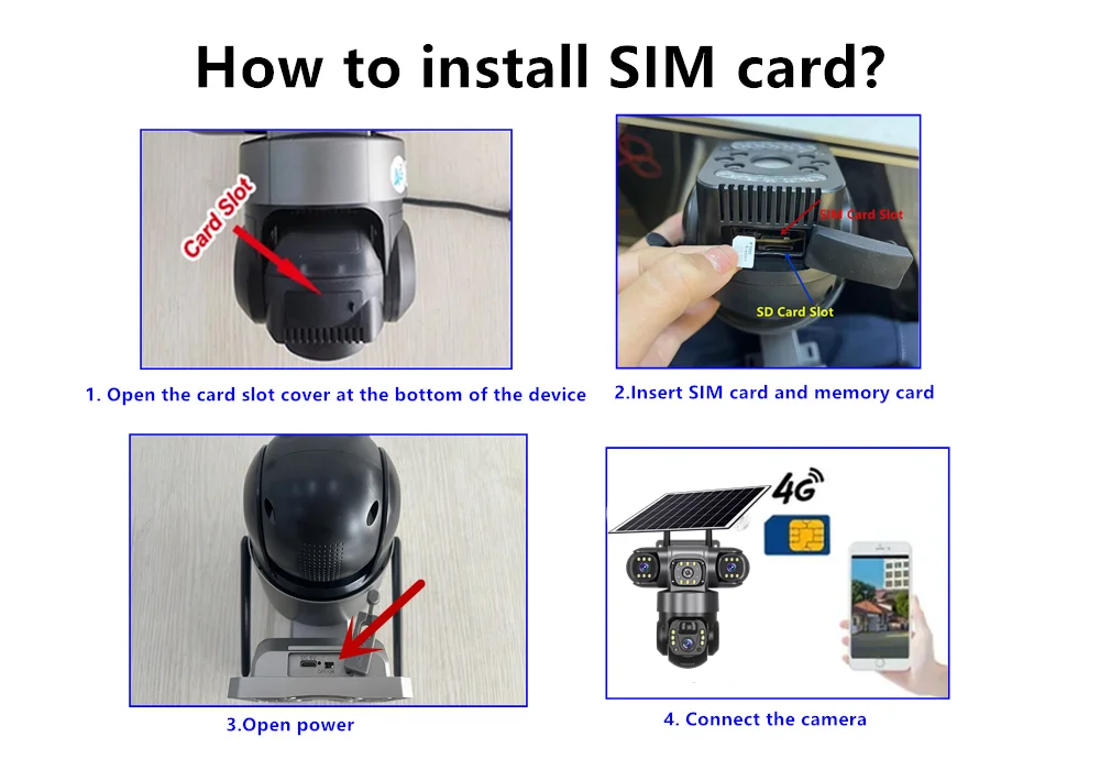 Η κάμερα 4G υποστηρίζει μόνο σύνδεση με κάρτα SIM 4G, διαθέτει θύρα SD και Θύρα SIM.