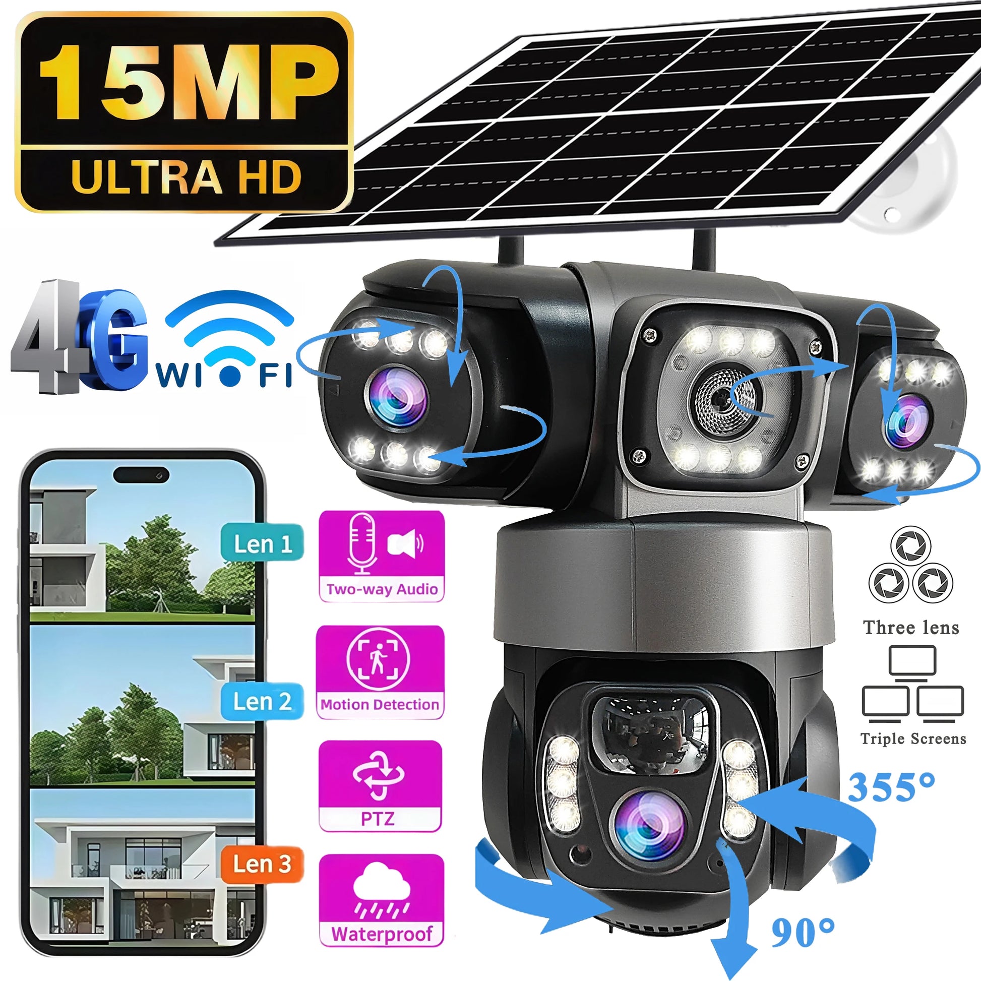 15MP τρεις φακοί τρεις οθόνες 4G WiFi ηλιακής ενέργειας μπαταρία PTZ κάμερα