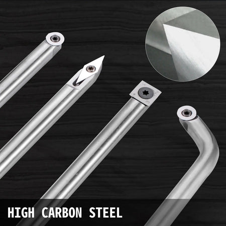 VEVOR Διαμαντένιοι Στρογγυλοί Τετράγωνοι Κόφτες 4Pc Εργαλεία Ξυλουργικής παρέχουν ακριβή, αποδοτικά αποτελέσματα για τους ξυλουργούς σε ένα τόρνο. Αυτό το σετ εργαλείων ξυλουργικής 4 τεμαχίων από καρβίδιο καλύπτει τον τετράγωνο κόφτη, τον διαμαντένιο κόφτη, τον άξονα στυλ γάντζου και τον στρογγυλό κόφτη, επιτρέποντας εσωτερικές και εξωτερικές κοπές με ευκολία. Κατασκευασμένα για αντοχή, αυτά τα εργαλεία συνδυάζουν κατασκευή από χάλυβα υψηλής περιεκτικότητας με λεπίδες καρβιδίου και μια λαβή από αλουμίνιο με φινίρισμα σε μαύρη σκόνη για άνετη, ασφαλή λαβή. Έτοιμα προς χρήση αμέσως μόλις ανοίξετε τη συσκευασία, μπορείτε να περιστρέψετε για να αποκαλύψετε μια νέα κοφτερή άκρη ή να αντικαταστήσετε τη λεπίδα—χωρίς συνεχή ακονίσμα απαιτείται.