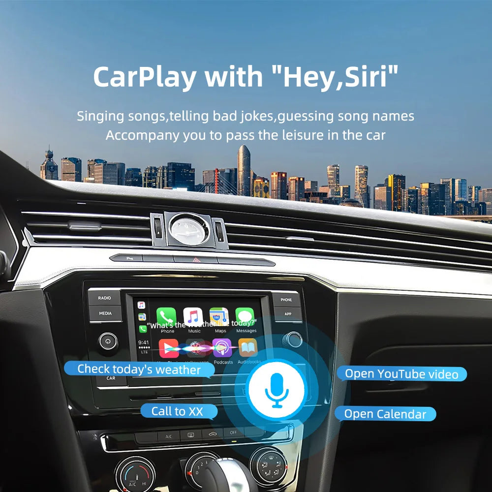 Με αυτή την αναβάθμιση, η οθόνη του ταμπλό σας παραμένει ανέγγιχτη και μπορείτε να χρησιμοποιήσετε τον εργοστασιακό περιστροφικό ελεγκτή και τα κουμπιά του τιμονιού για να πλοηγηθείτε στο CarPlay ή το Android Auto. Υποστηρίζει ενσύρματες και ασύρματες συνδέσεις, παρέχοντας ευέλικτη, hands-free πρόσβαση για καθημερινές μετακινήσεις και μεγαλύτερες διαδρομές. Χτισμένο γύρω από την πλατφόρμα MIB2 (και συμβατό με τα μοντέλα VW MIB1/MIB2), η μονάδα χρησιμοποιεί διπλής ζώνης WiFi (2.4 GHz / 5.8 GHz) και Bluetooth 5.0 για σταθερή συνδεσιμότητα. Ο φωνητικός έλεγχος μέσω του Hey Siri κρατά τα χέρια σας στο τιμόνι ενώ οι Χάρτες της Apple, οι Χάρτες της Google και το Waze παρέχουν ενημερώσεις κυκλοφορίας σε πραγματικό χρόνο και αξιόπιστη πλοήγηση. Είναι plug-and-play και μη καταστροφικό, οπότε η εγκατάσταση δεν θα διαταράξει το τρέχον σύστημά σας.