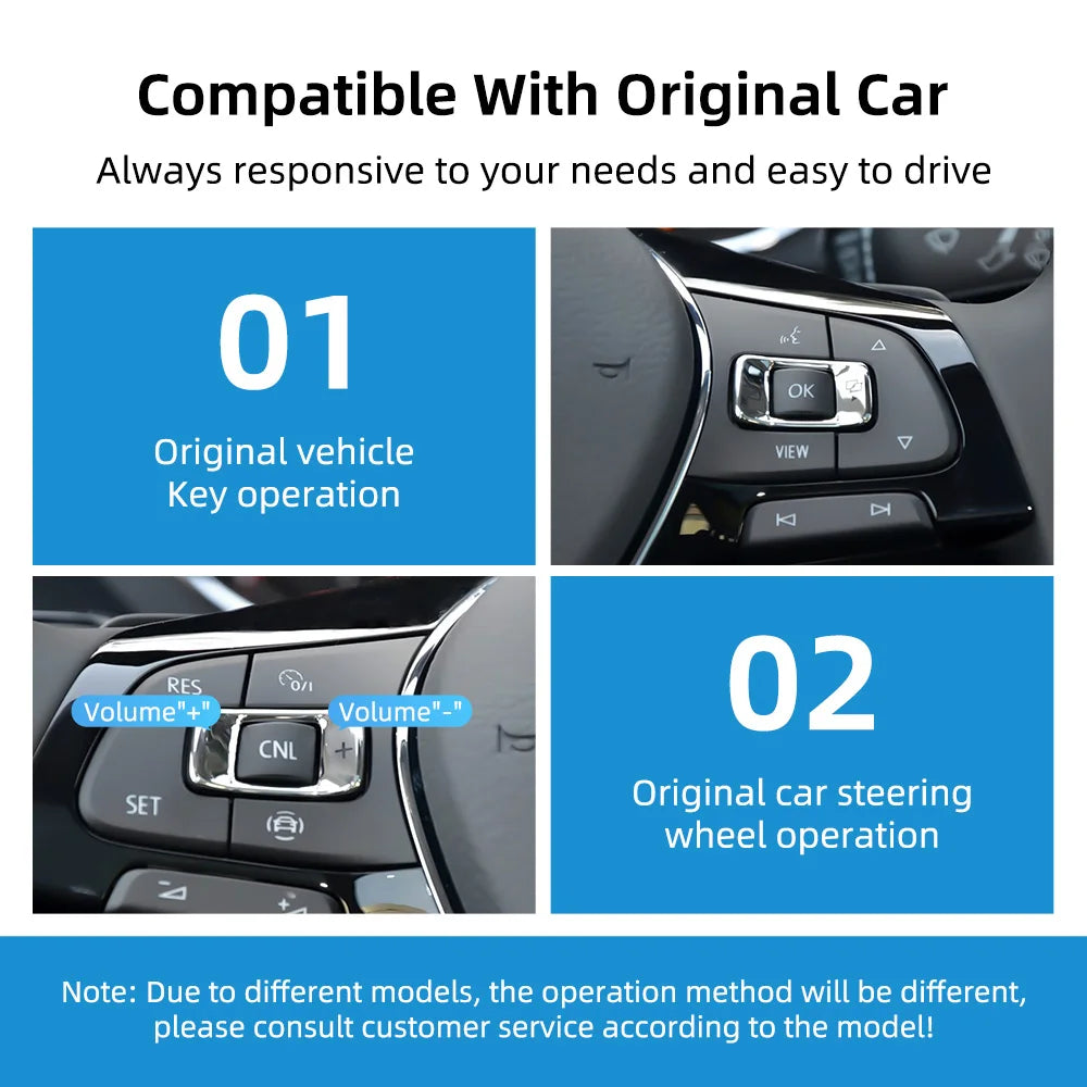 - Διατηρήστε την αρχική διεπαφή του VW σας—εναλλάξτε μεταξύ CarPlay και της εργοστασιακής οθόνης χρησιμοποιώντας τους οικείους εργοστασιακούς ελέγχους για μια συνεπή εμπειρία οδήγησης.