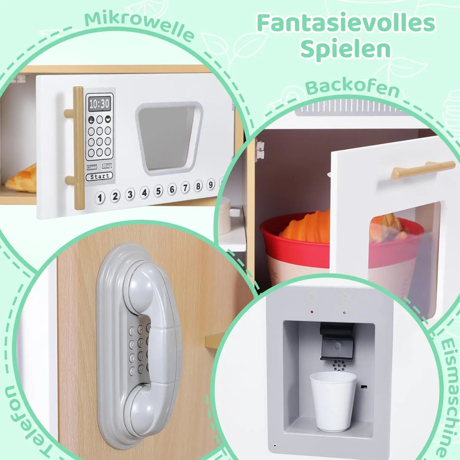 Ξύλινη Παιδική Κουζίνα Με Σόμπα, Διανομέας Νερού, Ήχος