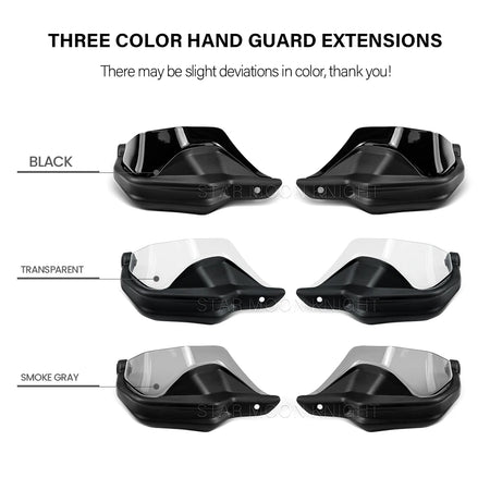 Κατασκευασμένες να είναι ελαφριές αλλά ανθεκτικές, οι επεκτάσεις έχουν αεροδυναμικό σχεδιασμό για να μειώνουν την επίδραση του ανέμου και να παρέχουν αξιόπιστη προστασία. Διαθέτουν αντοχή σε κρούση και αντοχή στην υπεριώδη ακτινοβολία για μακροχρόνια απόδοση, καθώς και υψηλή ακαμψία και εφελκυστική αντοχή για να αντέχουν στις καθημερινές απαιτήσεις οδήγησης. Διατίθενται σε διαφανές μαύρο, καπνιστό γκρι ή διαφανές για να ταιριάζουν με το χρώμα και το στυλ της μοτοσυκλέτας σας.