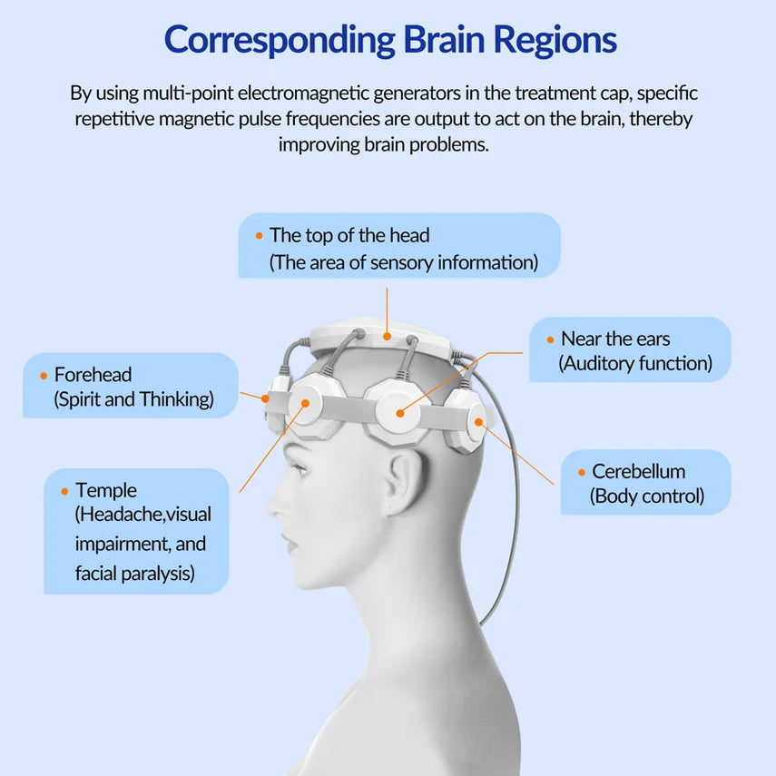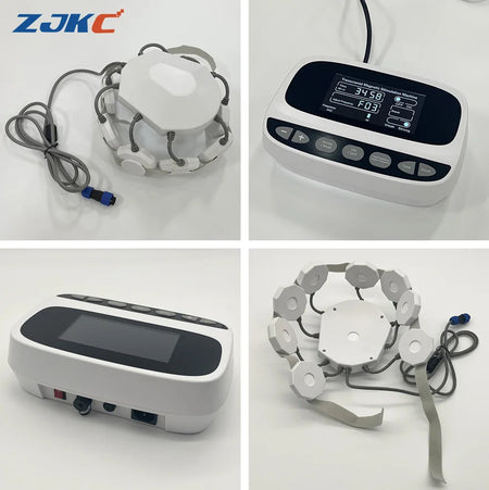 Ζήστε μη επεμβατική, καθοδηγούμενη από θεραπευτή διέγερση εγκεφάλου στο σπίτι με τη Μηχανή Θεραπείας ZJKC RTMS για τη θεραπεία της αϋπνίας και της κατάθλιψης. Αυτή η συμπαγής συσκευή διακρανιακής μαγνητικής διέγερσης (TMS) χρησιμοποιεί τις αρχές της επαναλαμβανόμενης TMS (rTMS) για να ρυθμίζει απαλά τη νευρωνική δραστηριότητα και τη ροή αίματος στον εγκέφαλο, υποστηρίζοντας την ισορροπία της διάθεσης και την ποιότητα του ύπνου. Η ελαφριά κατασκευή από ABS, σε συνδυασμό με ένα ευέλικτο σύστημα κεφαλής, προσφέρει άνετη εφαρμογή σε διαφορετικά μεγέθη κεφαλής και εύκολες, ανώδυνες συνεδρίες. Με 11 λειτουργίες συχνότητας, ρυθμιζόμενη μαγνητική ένταση και χρόνο συνεδρίας έως 95 λεπτά, μπορείτε να προσαρμόσετε τη θεραπεία στις ανάγκες σας. Το πακέτο περιλαμβάνει μία μεγάλη θεραπευτική κεφαλή και οκτώ μικρές θεραπευτικές κεφαλές, παρέχοντας ευέλικτη κάλυψη για στοχευμένη ή ευρεία διέγερση.