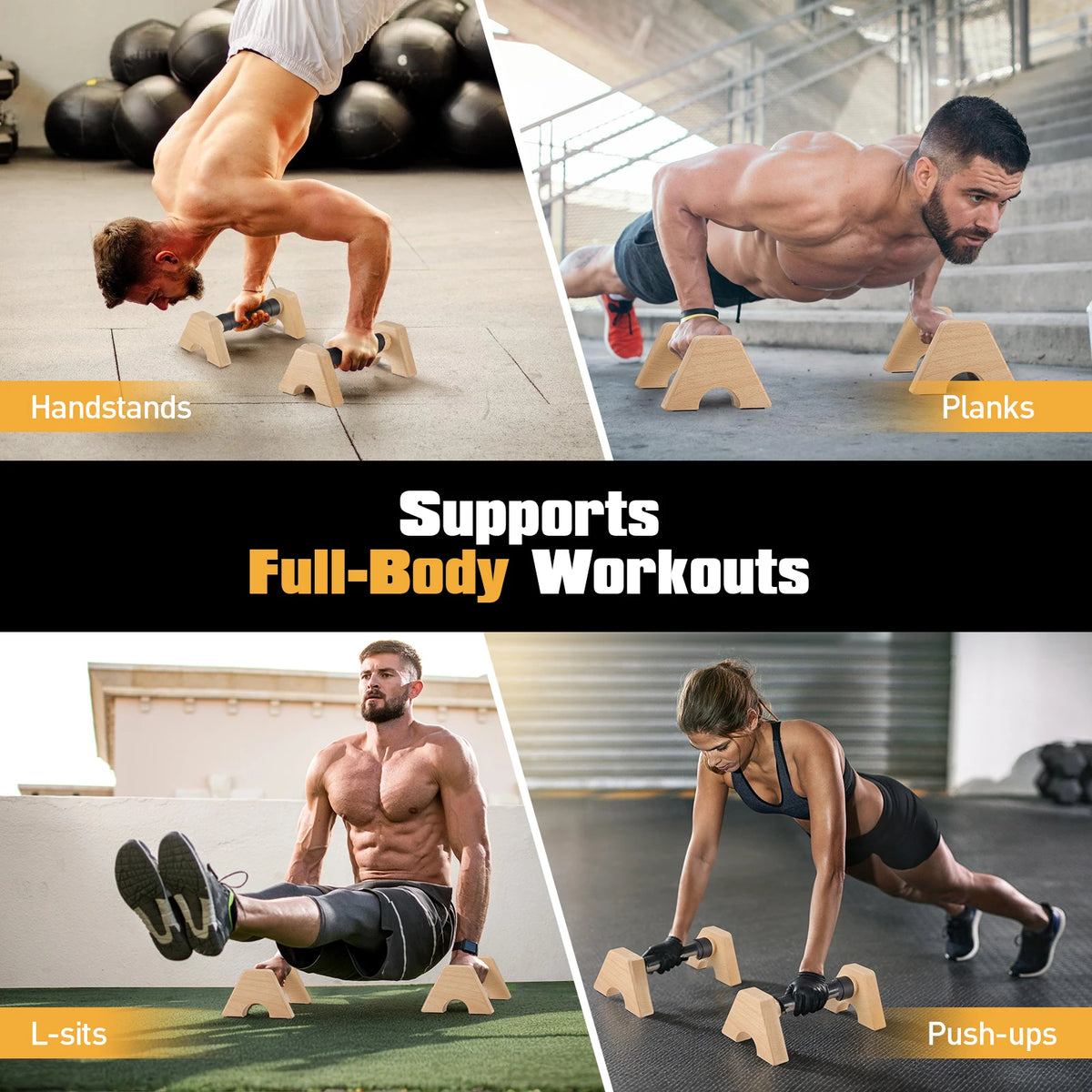 Barras de Flexiones de Madera Parallettes para Entrenamientos en Casa Antideslizantes