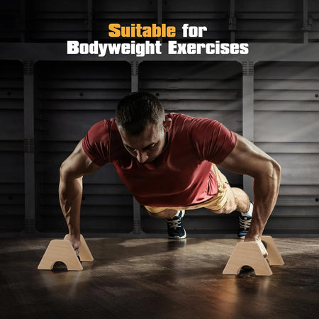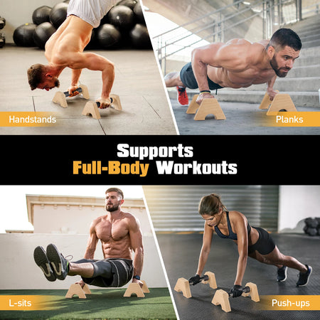 - La altura ergonómica reduce la tensión en las muñecas y soporta una posición cómoda de las manos durante flexiones, fondos y práctica de paradas de manos.