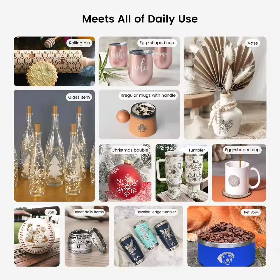 - Capacidad de materiales: más de 500 colores en acero inoxidable cepillado #304; corta madera de pino de 15 mm, acrílico de 8 mm (pase único); multi-pase hasta 25 mm de madera y 35 mm de acrílico; corte preciso en acero inoxidable hasta 0.05 mm