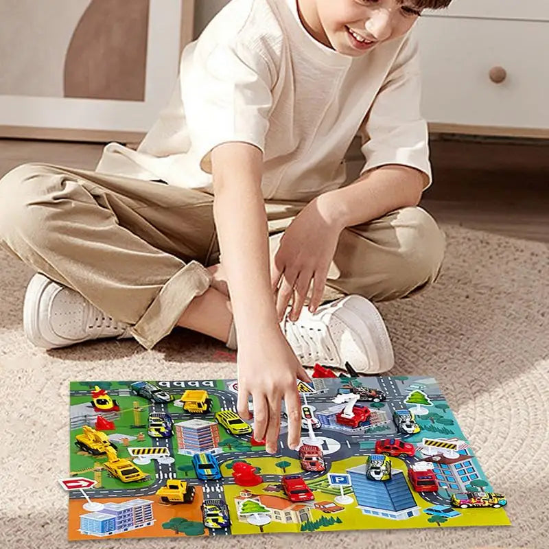 - Estimula la curiosidad y el juego imaginativo mientras los niños corren con los coches e inventan historias alrededor de la revelación diaria.