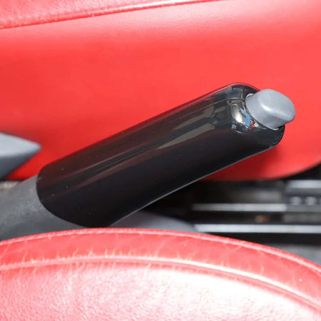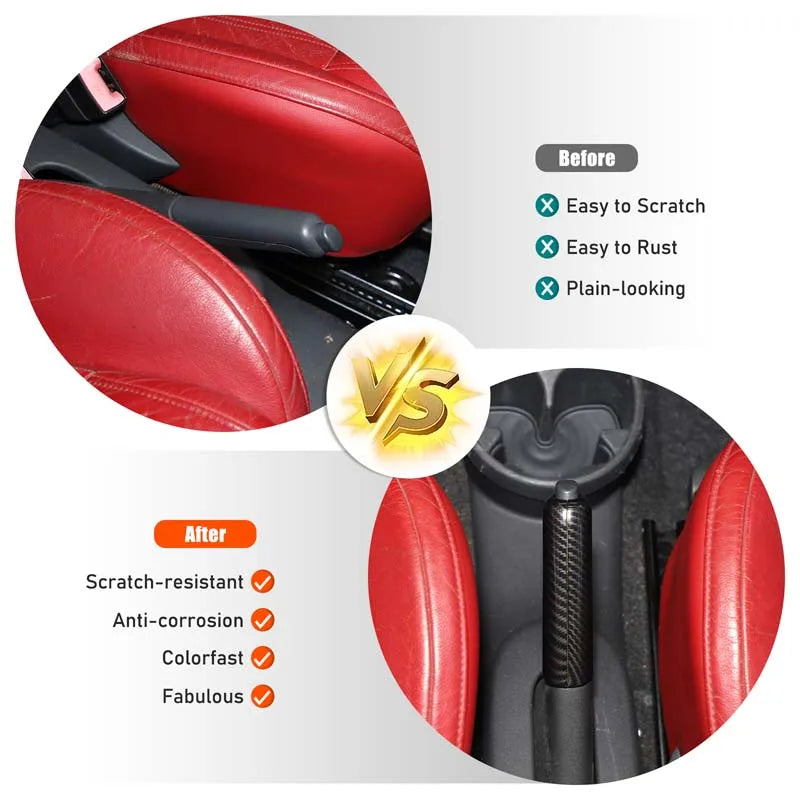 - Añade un elegante acento rojo de fibra de carbono mientras protege la palanca del freno de mano de arañazos.