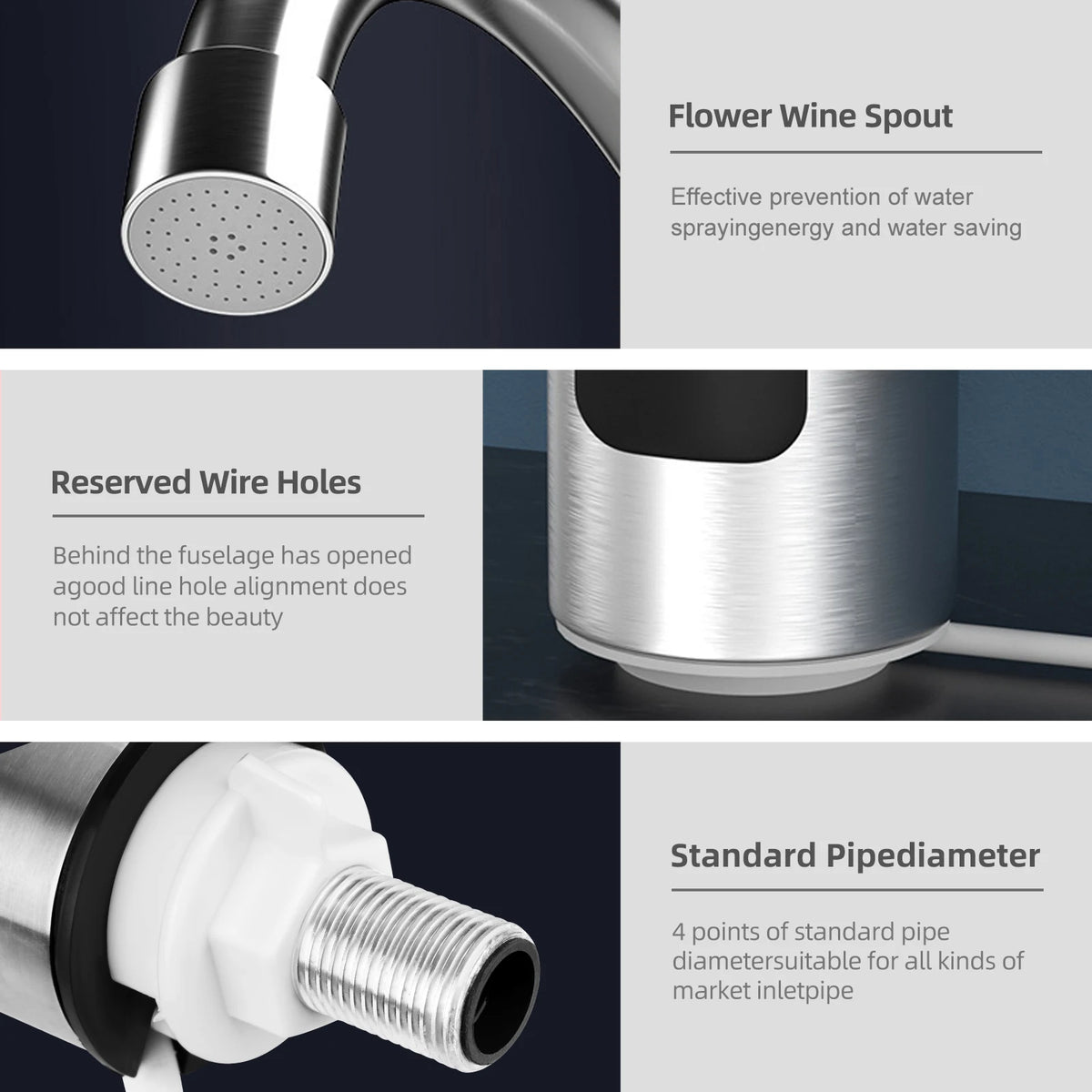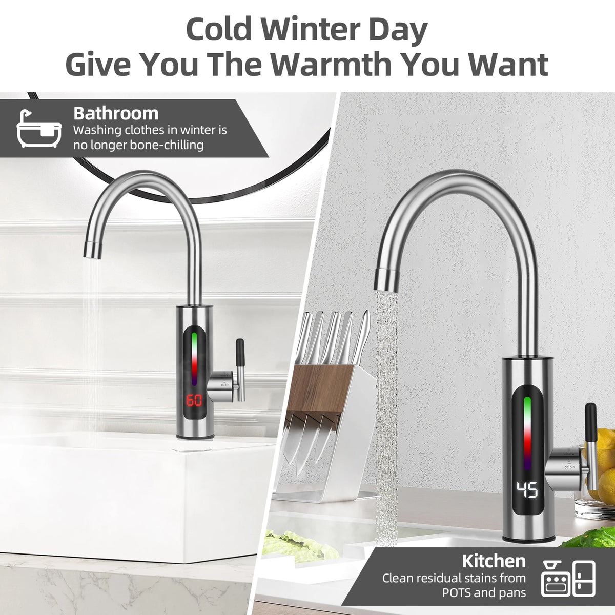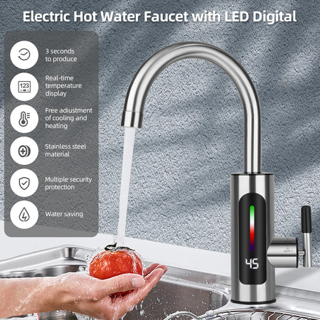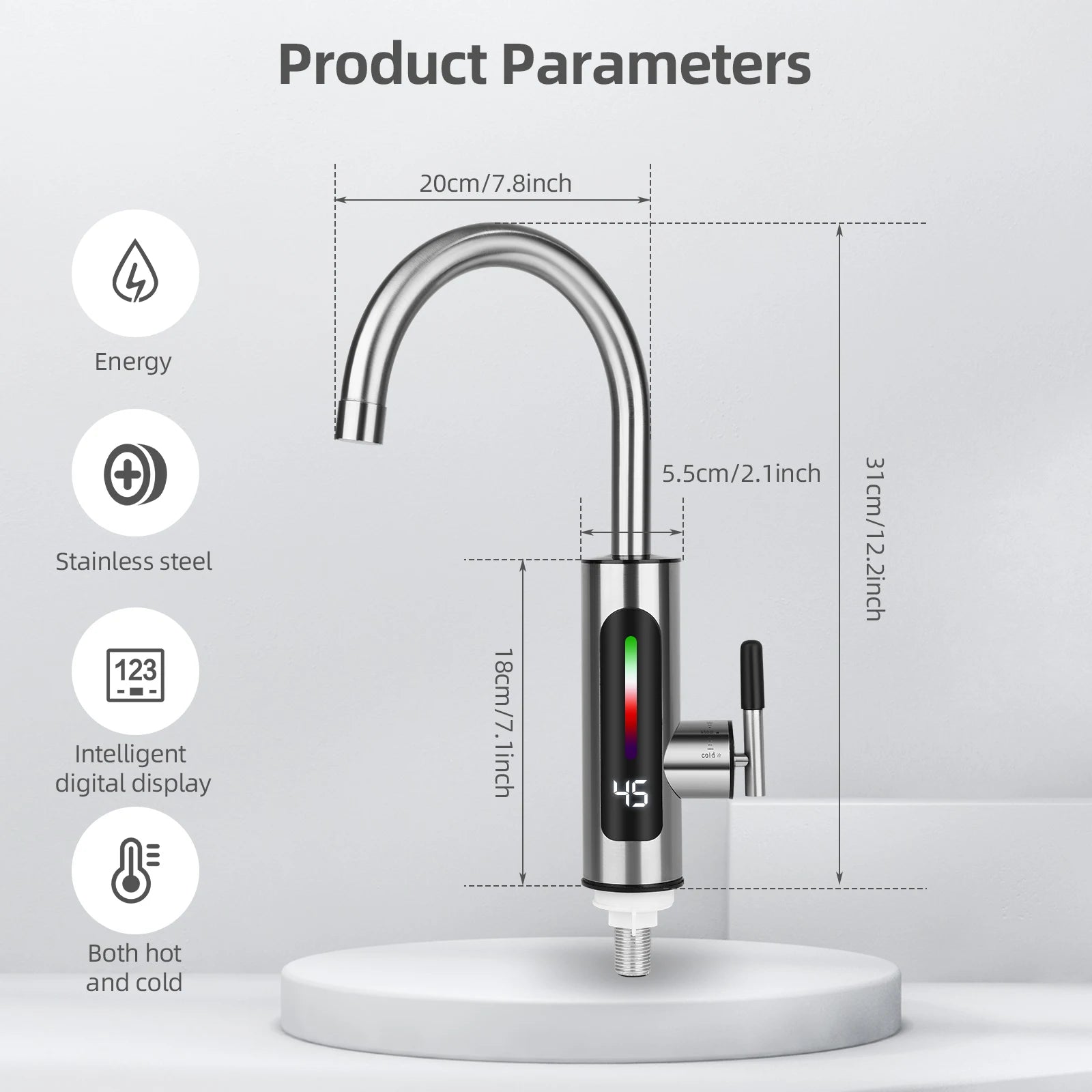 Experimente acceso instantáneo a agua caliente directamente en su fregadero con el Grifo de Agua Caliente Instantáneo Sin Tanque de 3000W con Pantalla LED. Este robusto grifo de acero inoxidable cepillado entrega agua caliente en aproximadamente 3 segundos, haciendo que lavar platos, cocinar y limpiar sea más rápido y conveniente. La funcionalidad dual de agua caliente y fría, combinada con una pantalla LED de temperatura en tiempo real, le ayuda a ajustar la temperatura perfecta mientras garantiza seguridad. Diseñado con separación de agua y electricidad, una pared interna anti-electricidad y características de seguridad protectoras, este grifo está construido para funcionar de manera confiable en cocinas concurridas.