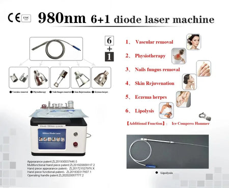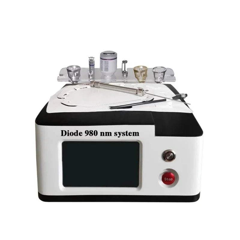 Conozca la Máquina de Fibra de Lipólisis Láser de 980Nm para la Eliminación de Venas en Araña: un dispositivo preciso y mínimamente invasivo diseñado para desvanecer y eliminar venas en araña y pequeñas lesiones vasculares. El láser de 980 nm es absorbido selectivamente por células vasculares que contienen porfirina, causando la coagulación de los vasos objetivo y la desaparición gradual con un impacto mínimo en el tejido circundante. Entregado a través de un mango de fibra flexible, permite un tratamiento preciso de áreas de difícil acceso para resultados cosméticos refinados.