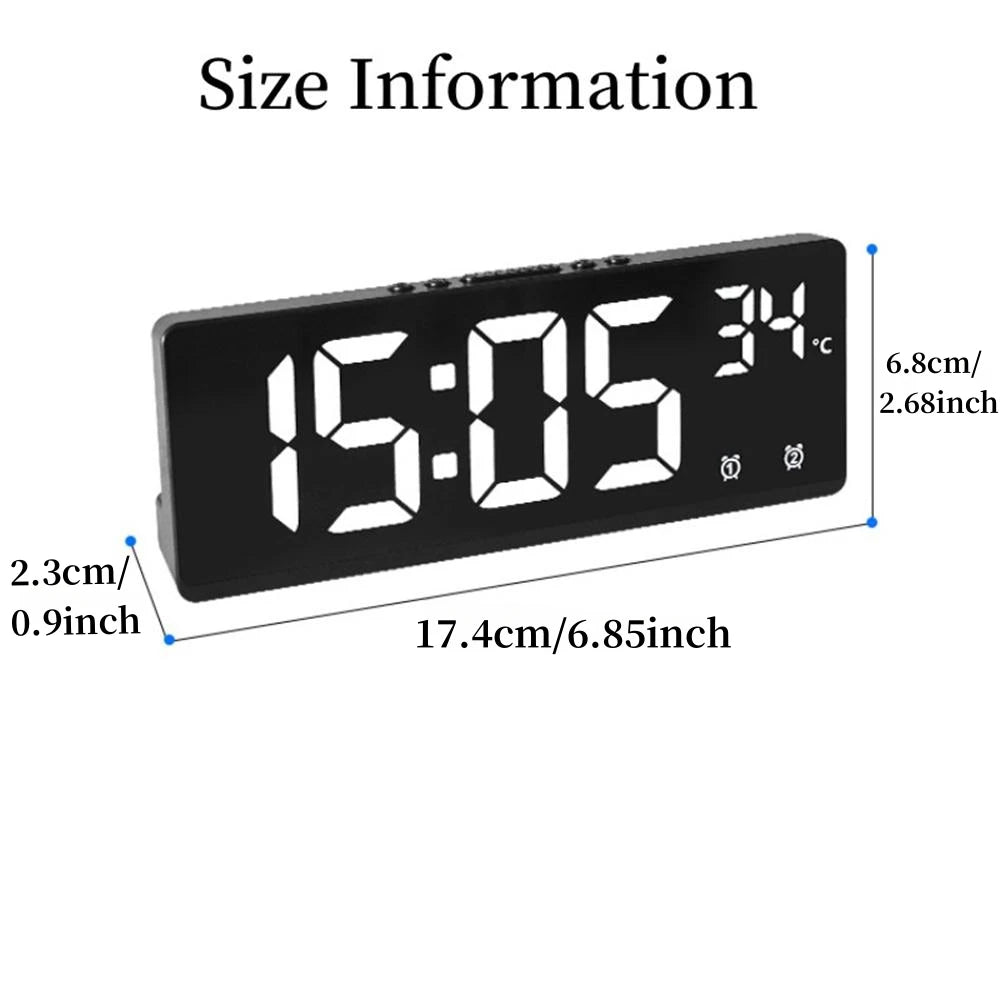 Mejore su mesita de noche con este reloj despertador digital con control por voz. Con alarmas duales, brillo ajustable y un diseño moderno y elegante, es la adición perfecta para su mesita. Disfrute de operación manos libres, función de repetición y modo nocturno para un sueño ininterrumpido. Personalice la visualización de la hora con opciones de formato 12/24 horas. Adopte la conveniencia y el estilo con este innovador reloj despertador.