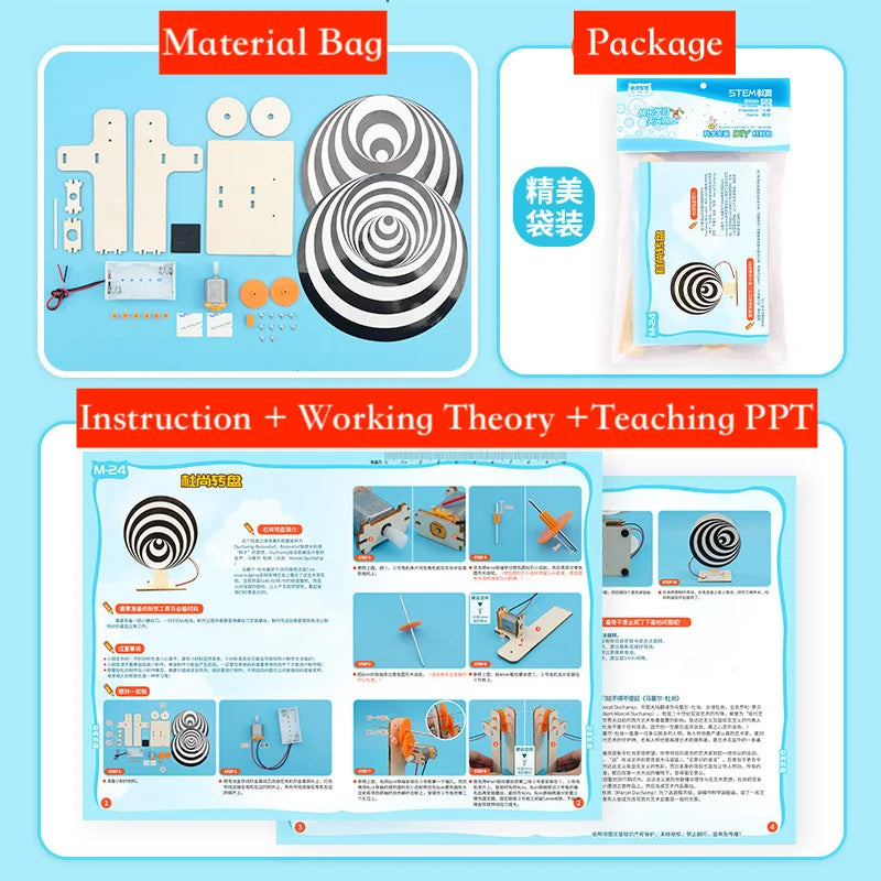 - Juguetes Montessori STEM DIY Tecnología Duchamp Rotorelief Material Didáctico para Experimentos Conjunto de Montaje de Tableros de Madera para Aprendizaje Escolar