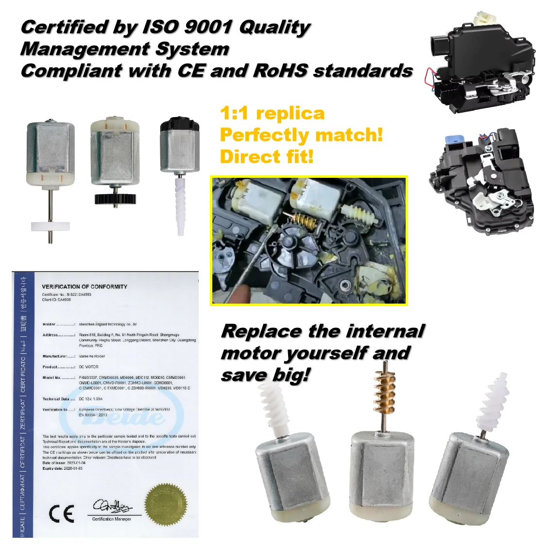 Descubre un actuador de motor de cerradura de puerta confiable diseñado para puertas delanteras izquierda o derecha, específicamente elaborado para encajar en el Seat Ibiza y ampliamente compatible con VW Golf, Skoda Fabia y Audi A8. Este motor de cerradura de puerta de reemplazo restaura el bloqueo seguro, la operación suave y el acceso rápido, resolviendo problemas comunes como puertas que no se bloquean o desbloquean de manera confiable y actuadores atascados. Diseñado para integrarse sin problemas con el sistema de bloqueo de tu vehículo, devuelve la seguridad confiable que esperas de tu automóvil.