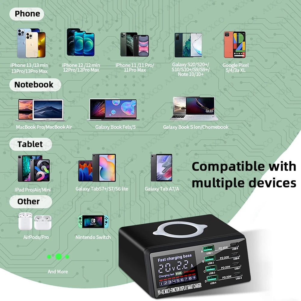 Estación de carga de cargador inalámbrico 110W Cargo rápido Adaptador de cargador USB PD USB C Fast Teléfono Cargador para iPhone 13 12 iPad Xiaomi