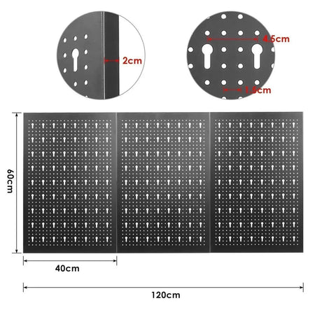 - El diseño que ahorra espacio ayuda a maximizar el espacio en la pared en garajes pequeños o talleres en casa; la configuración de 3 paneles puede usarse junta o por separado según sea necesario.