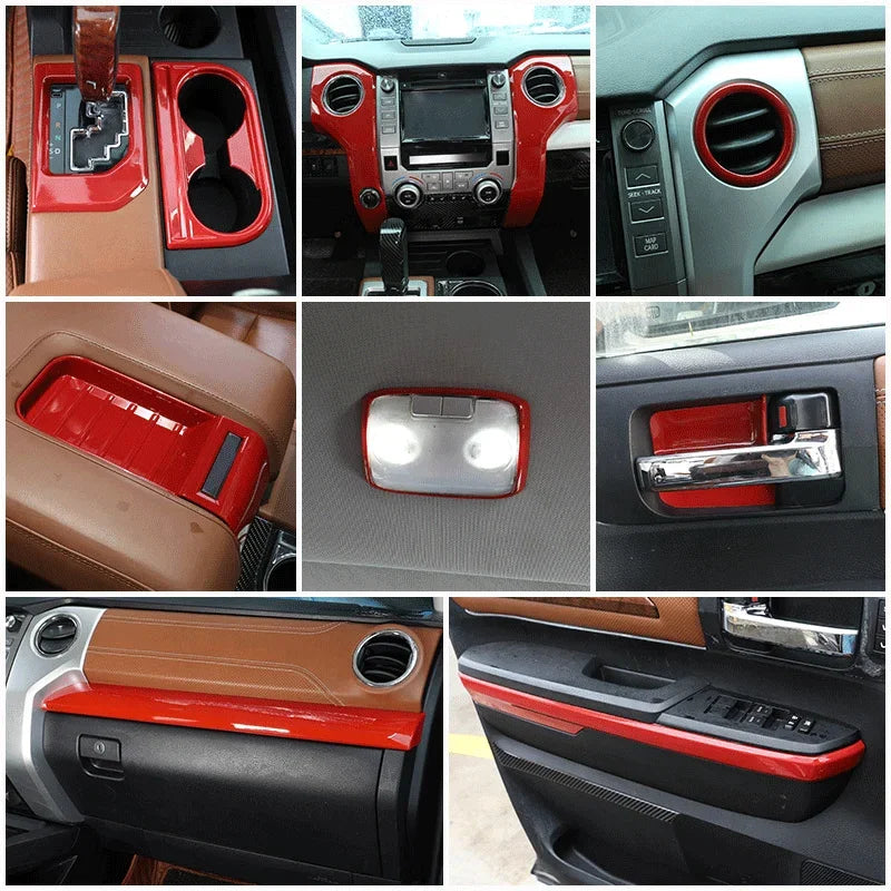 Dale a tu interior Toyota Tundra un aspecto audaz de fibra de carbono roja con la cubierta decorativa para marco de manija Red Carbon Fiber. Fabricada con ABS duradero y acabado estilo fibra de carbono roja, esta pegatina decorativa protege contra rayaduras y desgaste mientras añade un acento deportivo y premium a tu cabina. Diseñada para Toyota Tundra 2014-2021, se adhiere fácilmente al área del marco de la manija usando cinta adhesiva automotriz preaplicada, ofreciendo una instalación limpia y sin herramientas. La pegatina es adecuada para múltiples ubicaciones interiores, incluyendo paneles de navegación, área de encendido, paneles de cambios, interiores de puertas, consola central, zona del volante, luces de lectura y más. Por favor, confirme la compatibilidad con su vehículo exacto y la imagen de referencia antes de aplicar. Todo el equipo electrónico y mecánico, dispositivos y máquinas vendidos por InterCyprus a países de la UE están certificados CE y cuentan con una garantía de dos años.