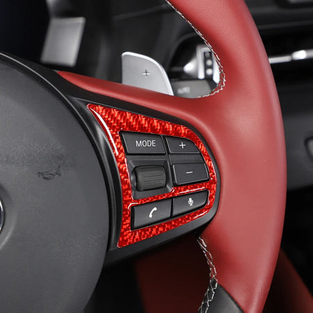 Mejore el interior de su Toyota GR Supra A90 2019-2022 con la Cubierta de Botón del Volante de Fibra de Carbono de cheya. Fabricada con fibra de carbono suave en acabado de fibra de carbono o fibra de carbono roja, este recorte de ajuste preciso protege el área del botón del volante de arañazos mientras añade un aspecto premium inspirado en las carreras a su cabina. La parte trasera cuenta con cinta adhesiva automotriz para una instalación rápida y sin herramientas, permitiéndole renovar el ambiente de su coche en minutos. Esta pieza proviene de una fábrica certificada ISO9001 y está diseñada para durabilidad y alineación consistente con el recorte original.