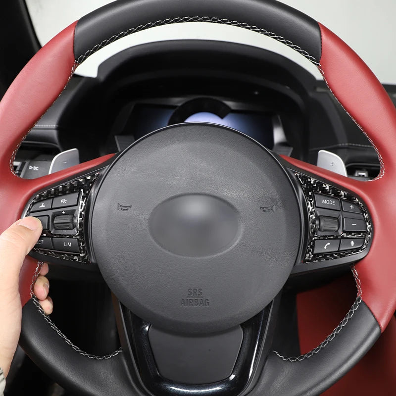 - 1 x Cubierta de botón del volante de fibra de carbono para Toyota GR Supra A90 2019-2022 (Modelo YW-010)