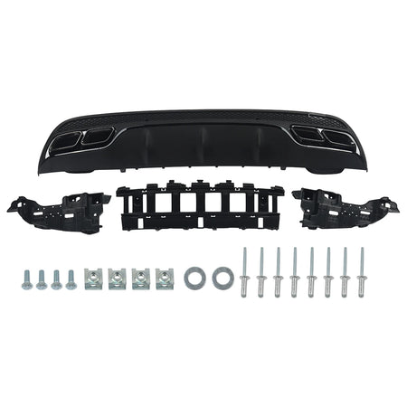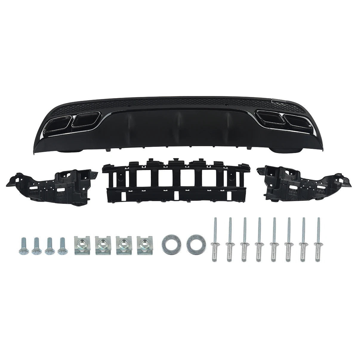Fabricado con plástico ABS de alta calidad y acabado en negro, este difusor está diseñado para durabilidad y rendimiento en la calle. Las salidas de escape están hechas de acero inoxidable SUS304 para un brillo duradero y resistencia a la corrosión. Con una resistencia al calor de hasta 150°C, soporta la conducción diaria mientras mantiene una apariencia similar a la de fábrica. Esta es una mejora de estilo de reemplazo directo con tornillos autorroscantes incluidos para una instalación sencilla. Tenga en cuenta que esta no es una pieza original de Mercedes, pero está diseñada para un excelente ajuste y un aspecto limpio e integrado.