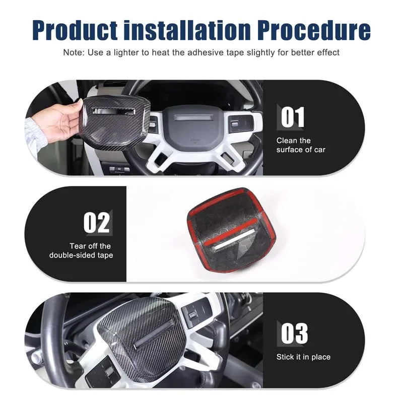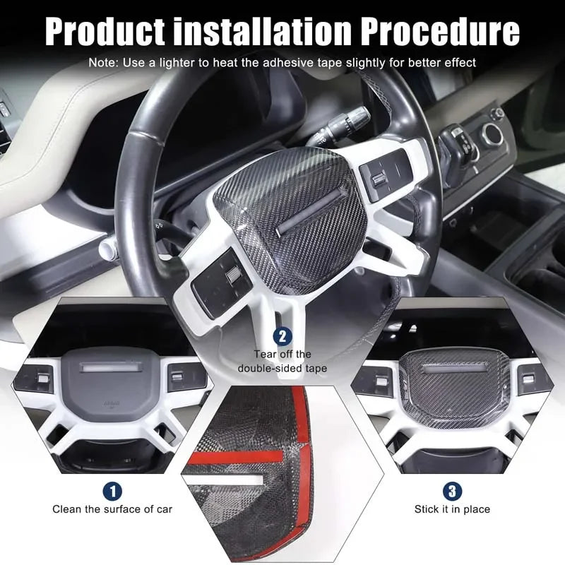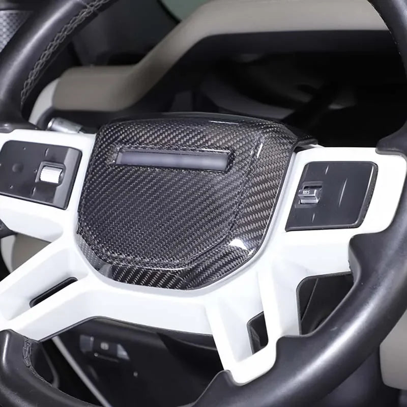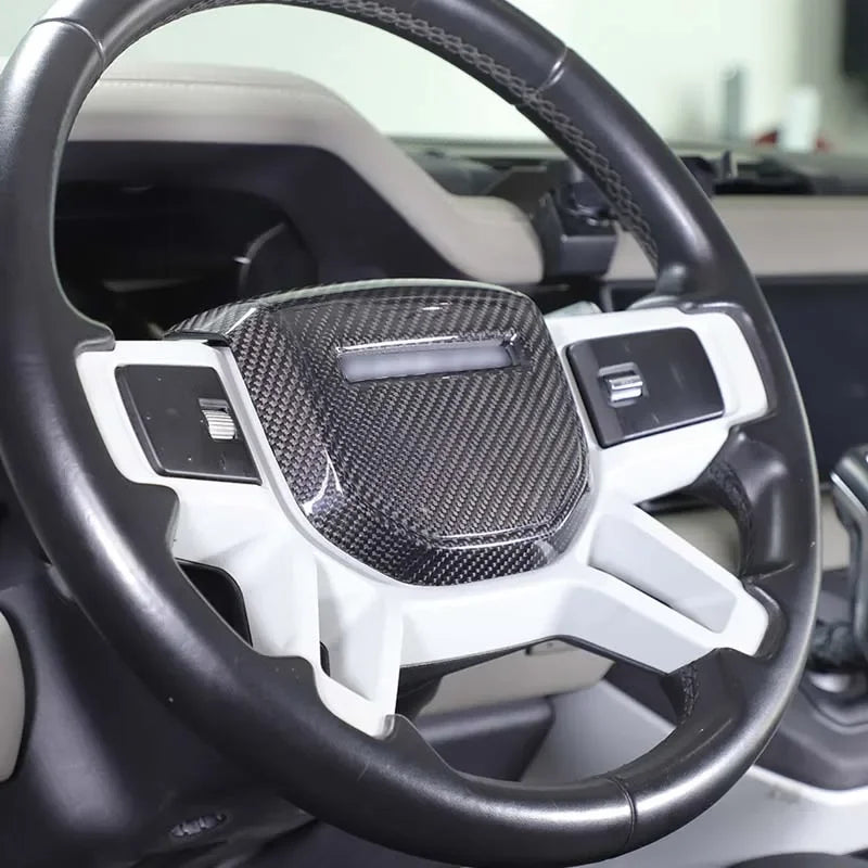 Renueva el interior de tu Defender con la Cubierta del Logo del Volante de Fibra de Carbono para Defender 90 110 130. Fabricada con fibra de carbono real, este moldeado interior premium protege el logo del volante del desgaste diario mientras añade un aspecto elegante y de alta tecnología. Diseñada específicamente para los modelos Land Rover Defender 90, 110 y 130 desde 2020 en adelante, se instala rápidamente con una fuerte cinta adhesiva automotriz en la parte trasera—no se requieren herramientas.