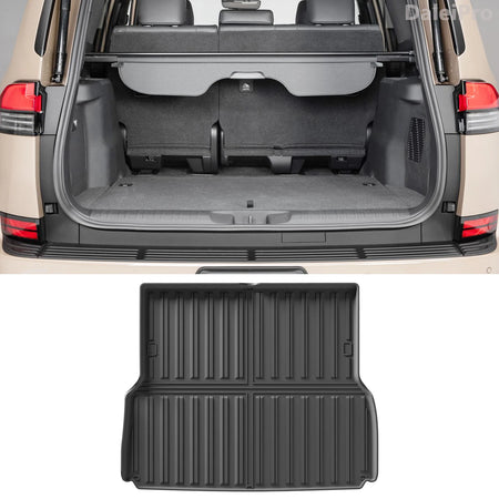 - El ajuste personalizado para configuraciones de 5 asientos garantiza una sensación segura y antideslizante y una cobertura completa desde la parte delantera hasta las filas traseras y el área de carga.