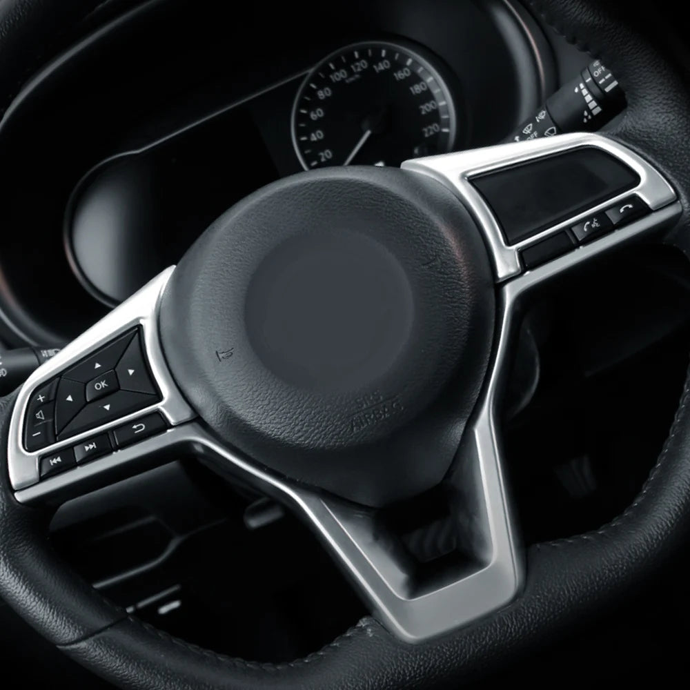 - 2 x Marcos de cubierta de panel de botones del volante en ABS Plateado Mate