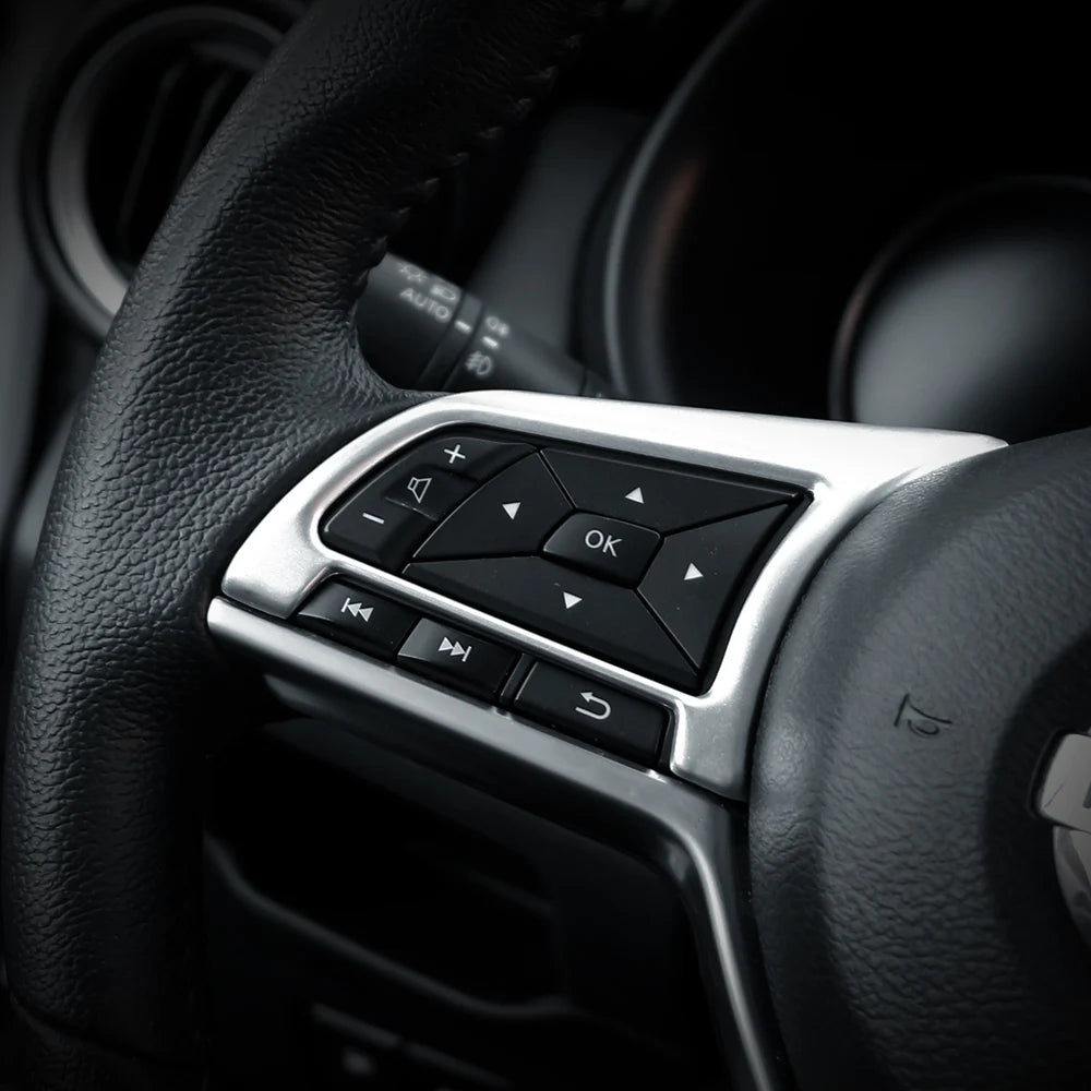Mejore el interior de su Nissan Micra con este Marco de Cubierta de Botones del Volante en ABS Plateado Mate. Este juego de 2 piezas añade un acento elegante y premium al área del volante mientras protege las superficies desgastadas del uso diario. Fabricados con ABS duradero y un acabado plateado mate refinado, estas cubiertas de adorno son ligeras, resistentes al desgaste cotidiano y diseñadas para una actualización sencilla de bricolaje.