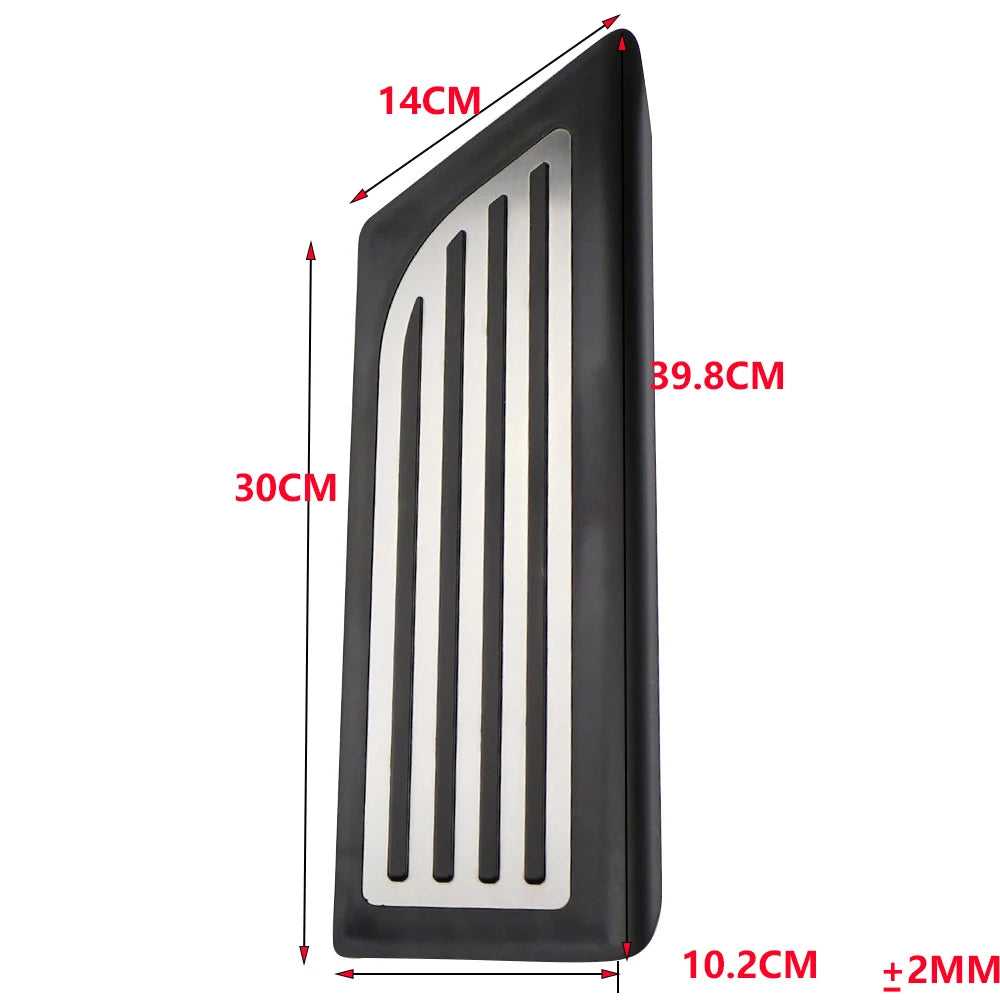 La cubierta del pedal muerto del Tesla Model 3 es una elegante y duradera mejora para el reposapiés, diseñada específicamente para interiores de Model 3 con volante a la izquierda (LHD). Construida con una base de ABS resistente y una superficie de acero inoxidable, añade un aspecto premium mientras proporciona a tu pie izquierdo un lugar sólido para descansar durante largos viajes. Esto no es un accesorio de reemplazo—es una mejora que aumenta la confianza, mejora la comodidad y protege el área del pedal de fábrica de rasguños y desgaste.